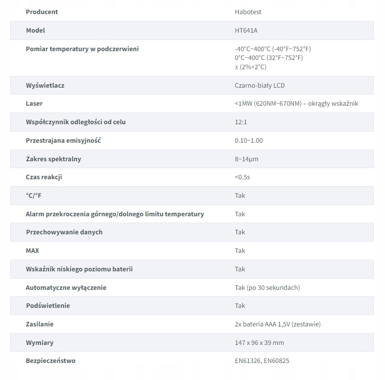 ▶️ Устройство идеально подходит для домашнего использования — например, для проверки температуры духовки или морозильной камеры. Он также будет использоваться в производственной сфере, для термической обработки и в сфере общественного питания. Пирометр также имеет функцию автоматического отключения (через 30 с), сохранения данных и сигнализацию низкого уровня энергии.