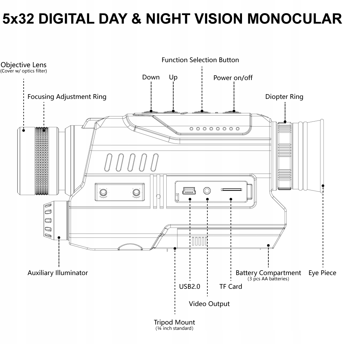 - Диоптрийная коррекция окуляра: +/- 3 диоптрии