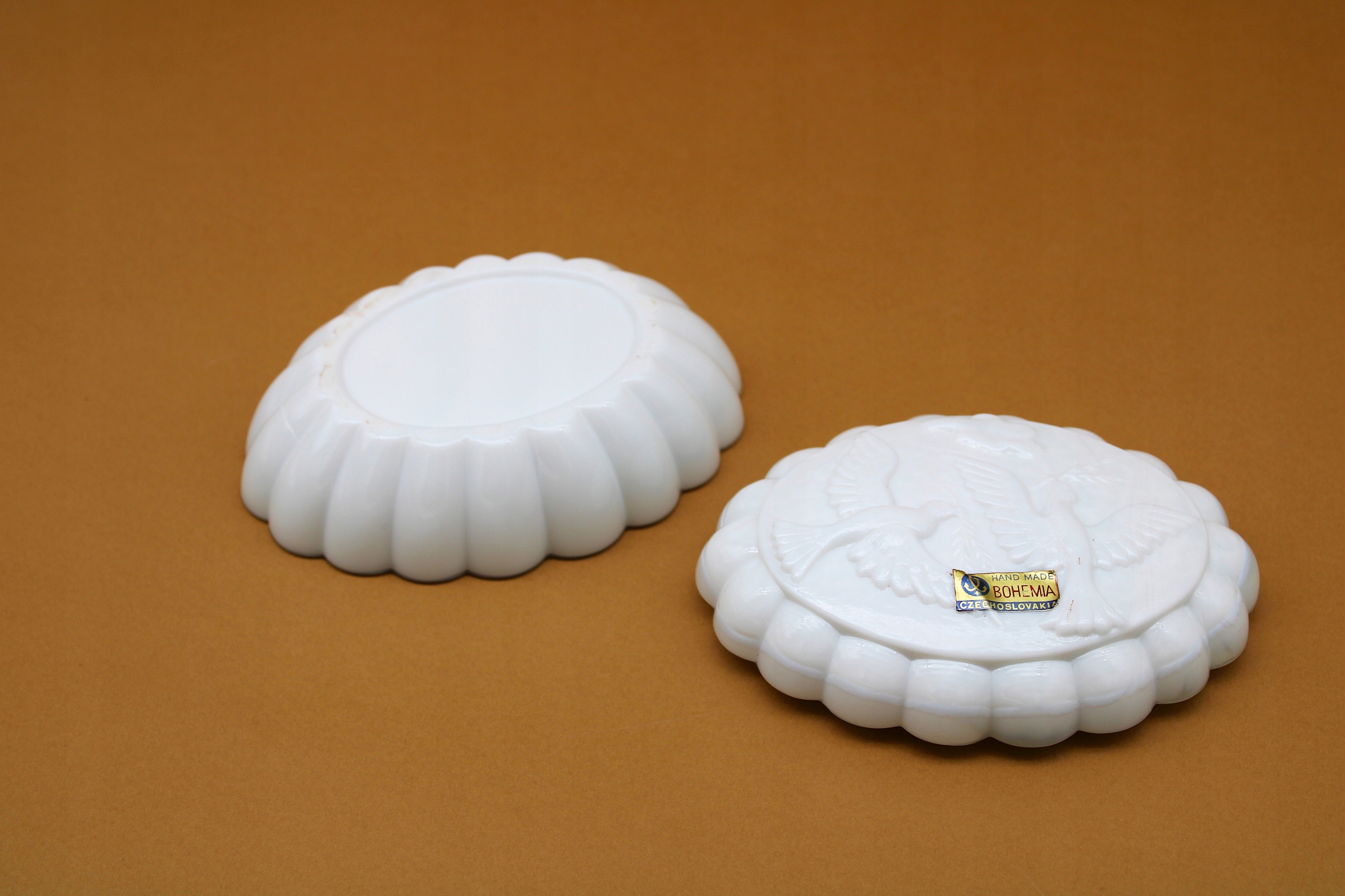РЕКОМЕНДУЮ СТАРУЮ ТЯЖЕЛУЮ КОРОБКУ TURTLE DOVE СТЕКЛЯННАЯ БОГЕМИЯ СТАРАЯ ЧЕХОСЛОВАКИЯ ДИЗАЙН КУРТ ШЛЕВОГТ СОСТОЯНИЕ ТАКОЕ КАК НА СКАНЕ, ОЧЕНЬ ХОРОШЕЕ