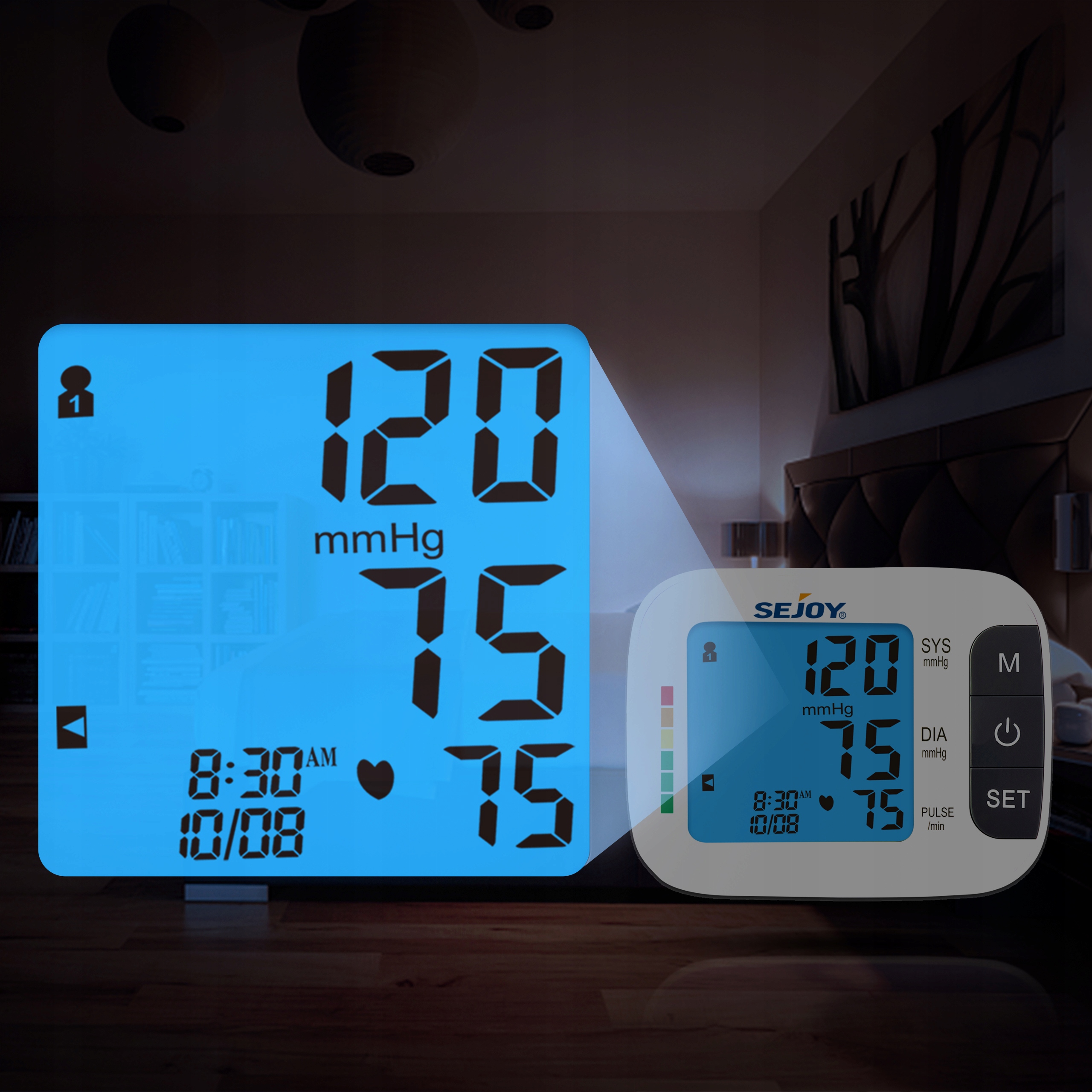 Тонометр Sejoy DBP-1359-1 для измерения артериального давления на плече оснащен индикаторами классификации, основанными на рекомендациях ВОЗ (Всемирной организации здравоохранения) по артериальному давлению.