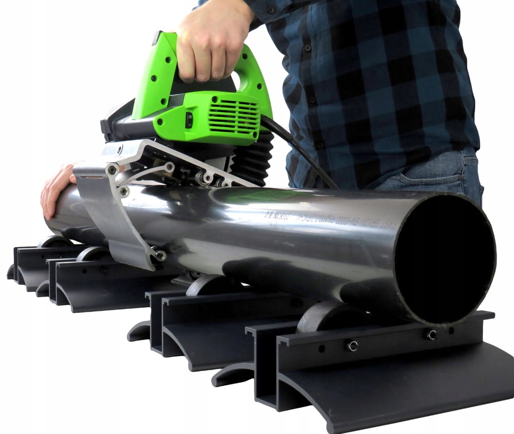 ⭐В комплект фрезы входит 4 основы с роликами. Основания ставятся с помощью обрезанной трубы. Ролики обеспечивают точное вращение трубы по одной оси. Благодаря этому срез производится под идеальным углом и получается очень точным.