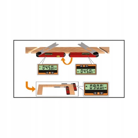 - Легко и просто в использовании- Быстрое измерение- Большой, детализированный ЖК-дисплей- Прочный, изготовлен из легкого алюминия- Диапазон измерения 0–360°