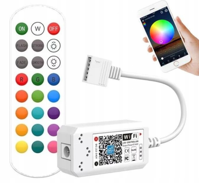 КОМПЛЕКТ, ГОТОВЫЙ ДЛЯ НЕЗАВИСИМОЙ УСТАНОВКИ, С ЦВЕТНОЙ СВЕТОДИОДНОЙ ЛЕНТОЙ RGB, МУЗЫКАЛЬНЫМ КОНТРОЛЛЕРОМ Wi-Fi ANDROID/IOS И БЛОКОМ ПИТАНИЯ ⏪4M⏩