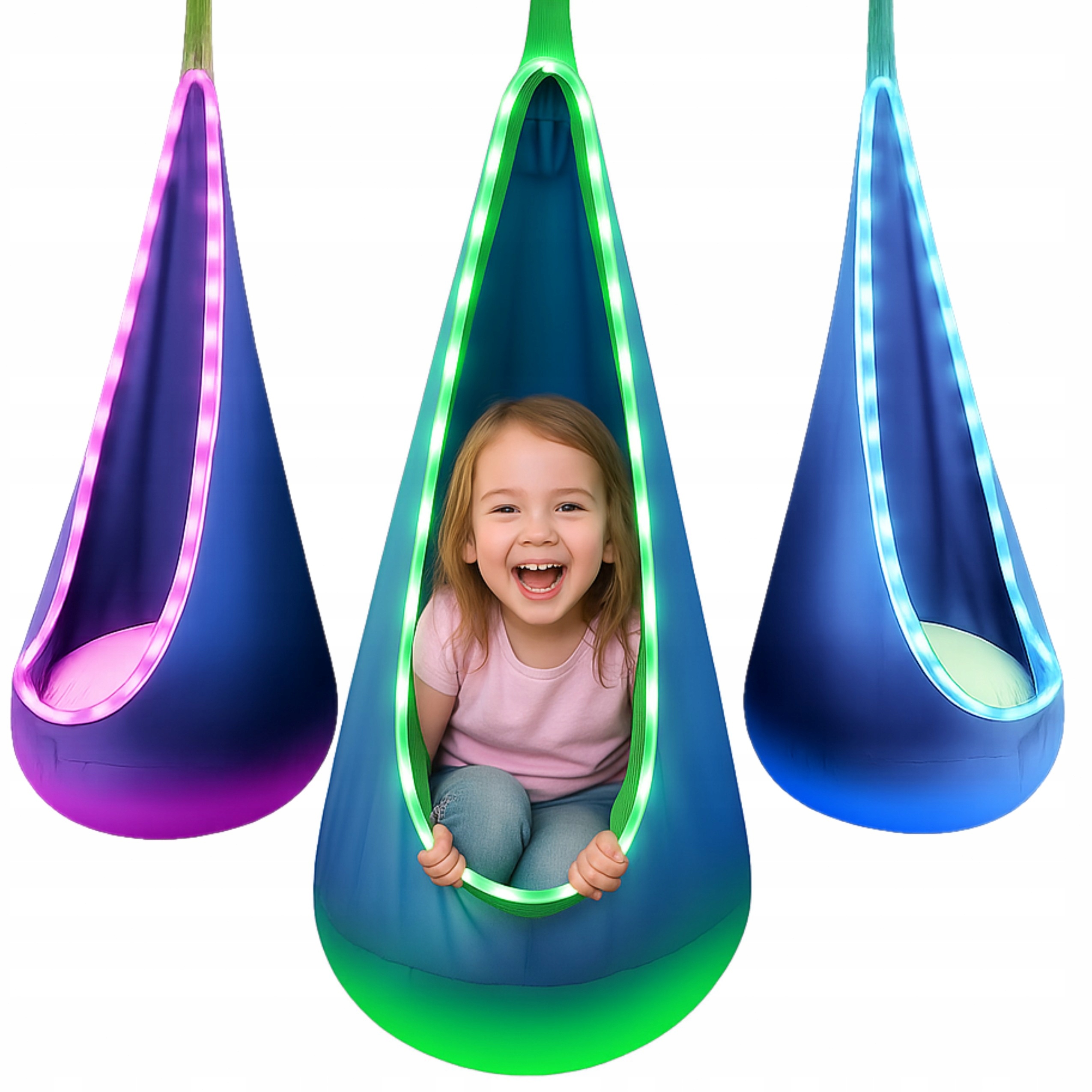 ✅ Светодиодное освещение с дистанционным управлением - 16 цветов, 4 режима мигания, регулировка яркости. Качание сияет во многих цветах, создавая уникальные сенсорные впечатления и волшебную атмосферу в детской комнате.