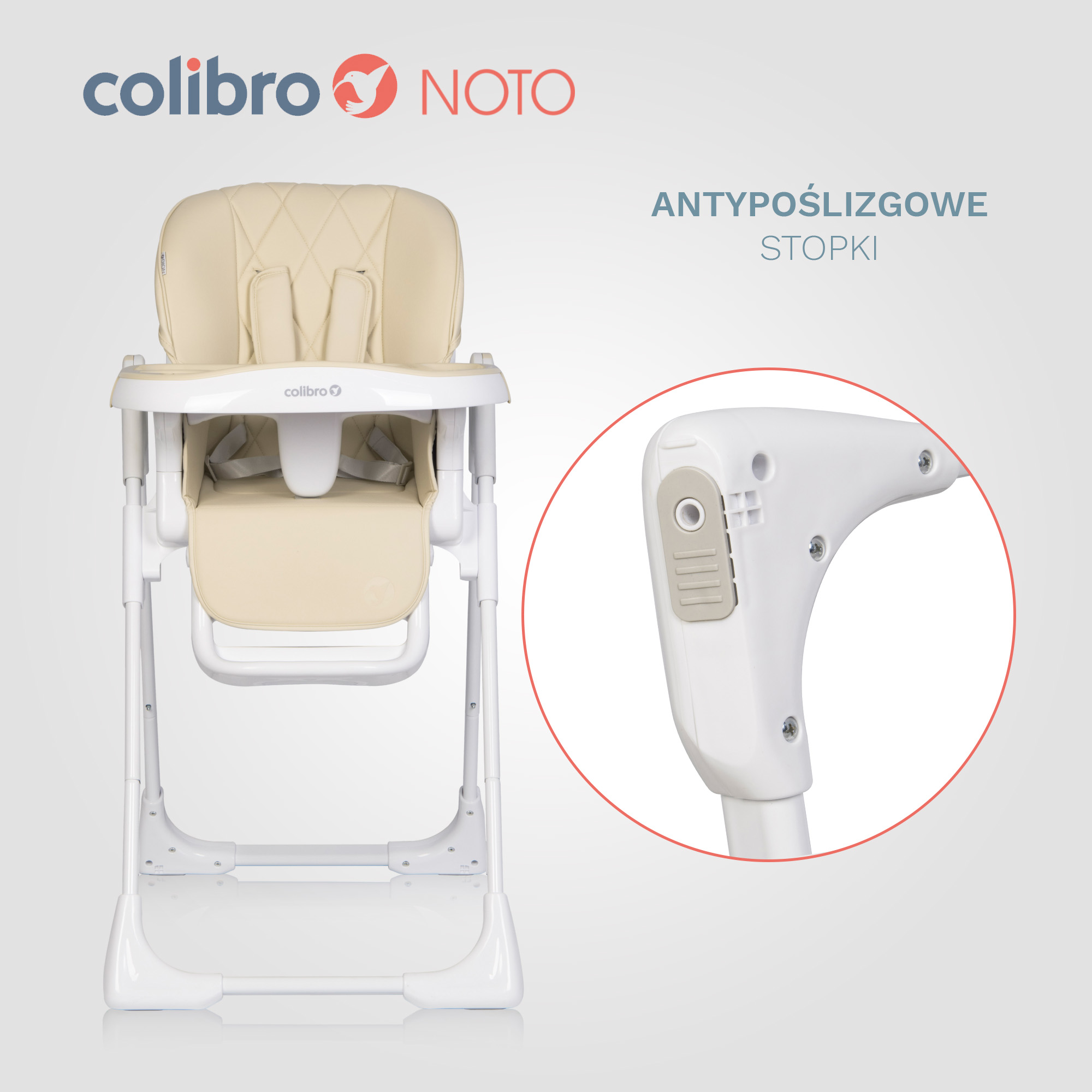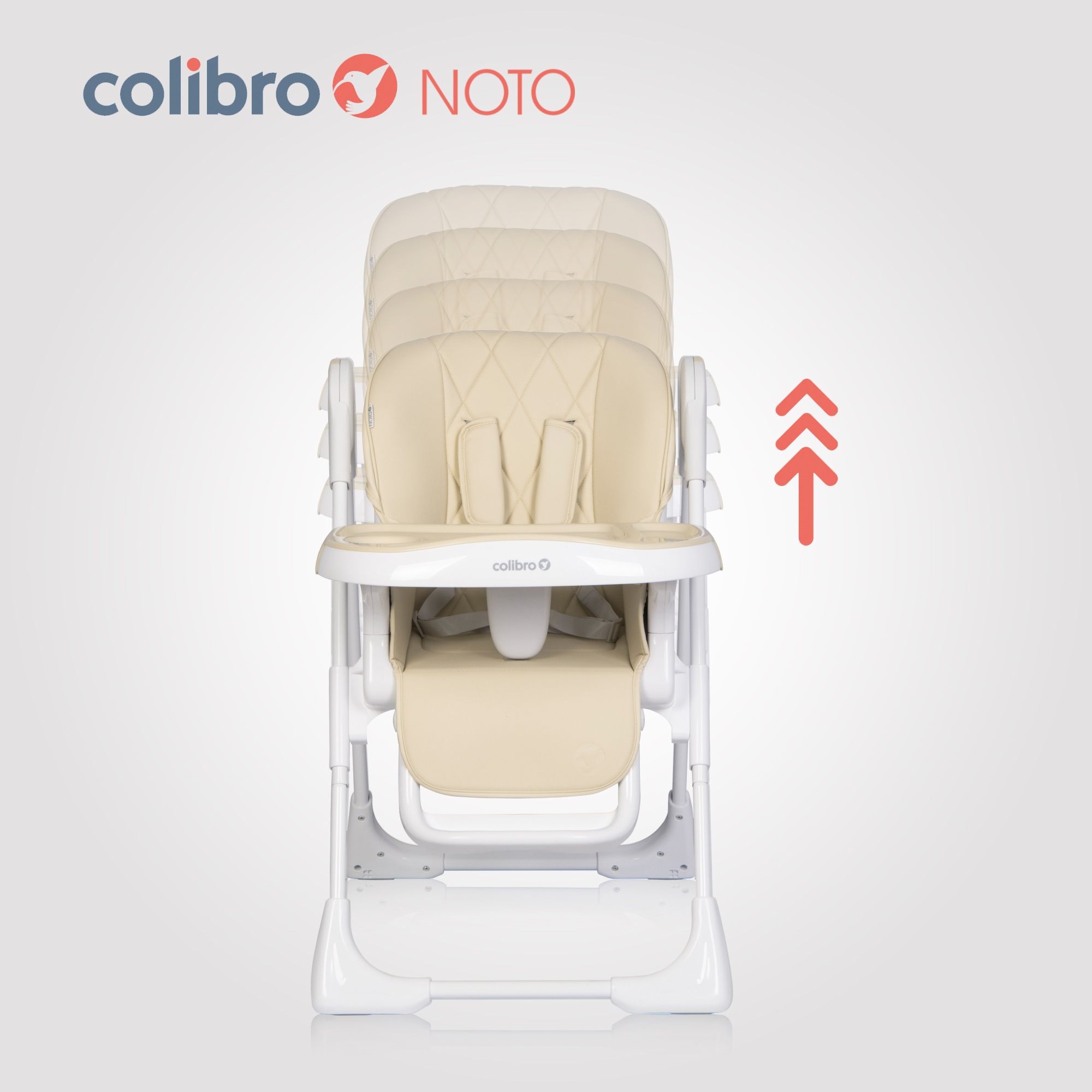 Colibro noto имеет до 7 настроек высоты , благодаря которой его можно использовать в качестве кресла с высоким содержанием кормления, добавленного к таблице родителей (с или без подноса) или в качестве низкого стула для старшего ребенка.