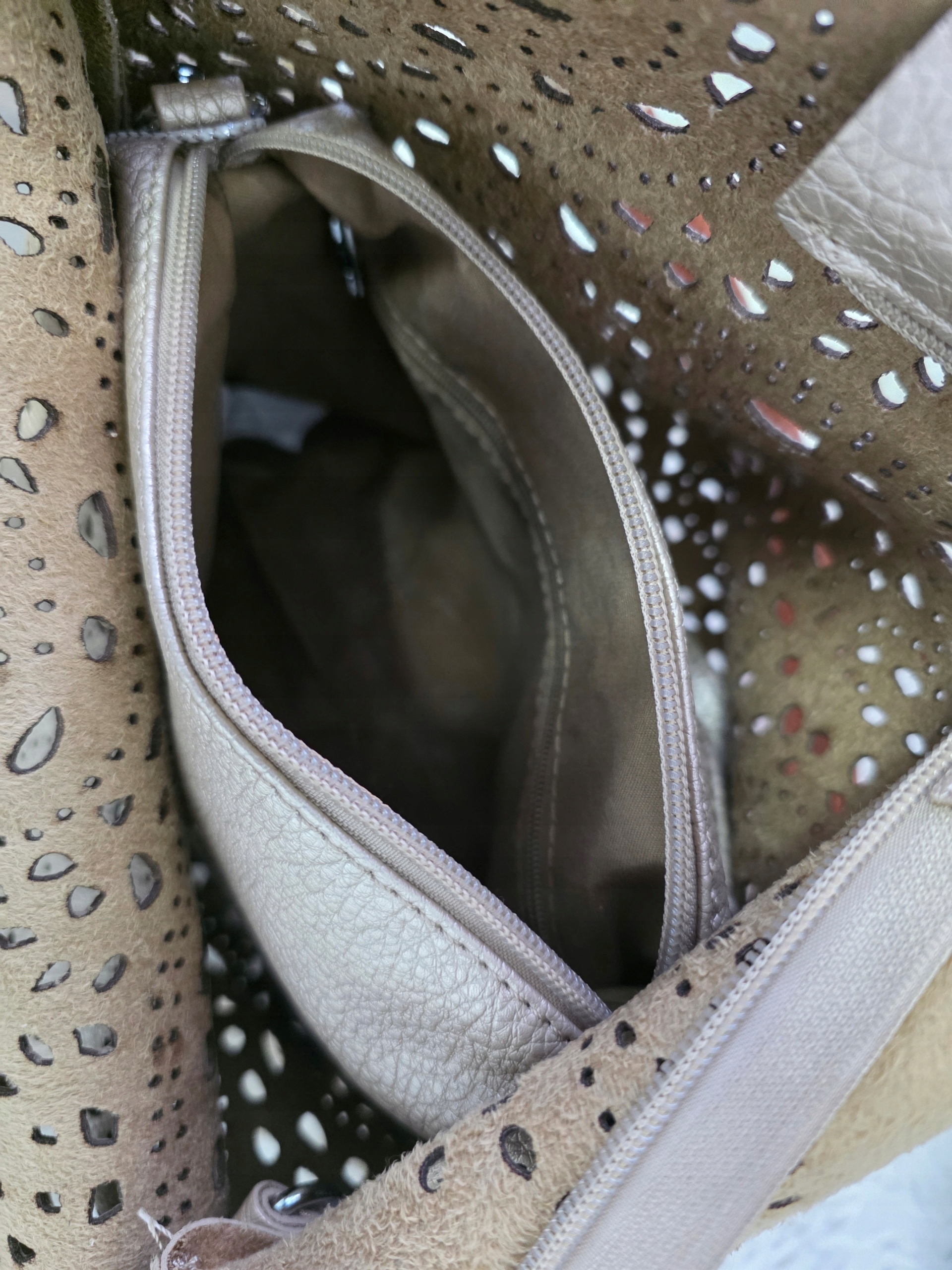 В наборе вы найдете практического косметолога, который может выступать в качестве отдельной сумки для мессенджера - идеально подходит для быстрых результатов или вечерних встреч. Внутри косметолога есть карман, закрытый с ползунком, чтобы вы могли безопасно скрыть самые важные мелочи.