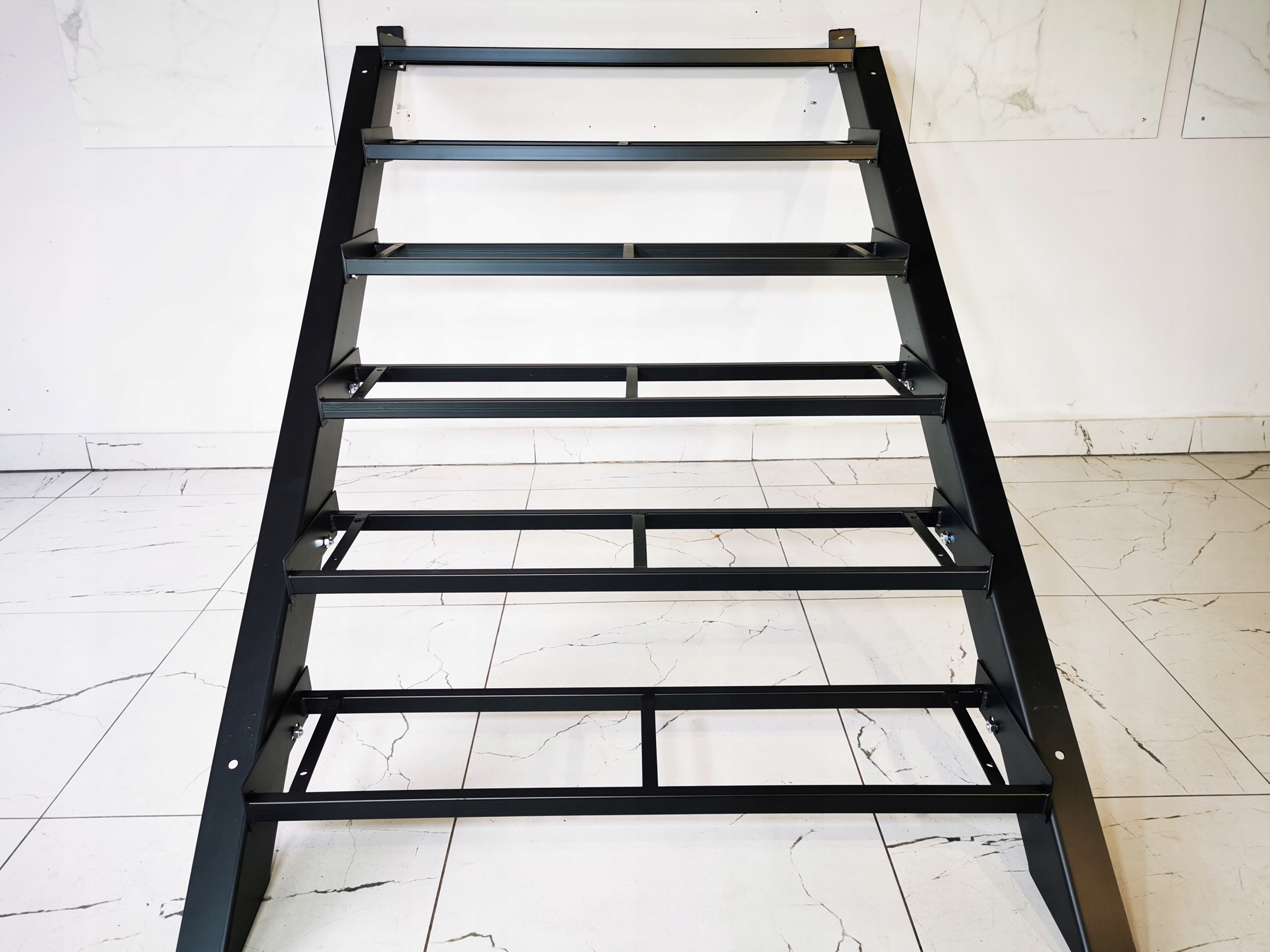 Хранить 100x28см, изготовленную из стали и композитной платы. Плата закреплена снизу с углом, толщина степени составляет 5,5 см (2,5 см платы+3 см стальной профиль).