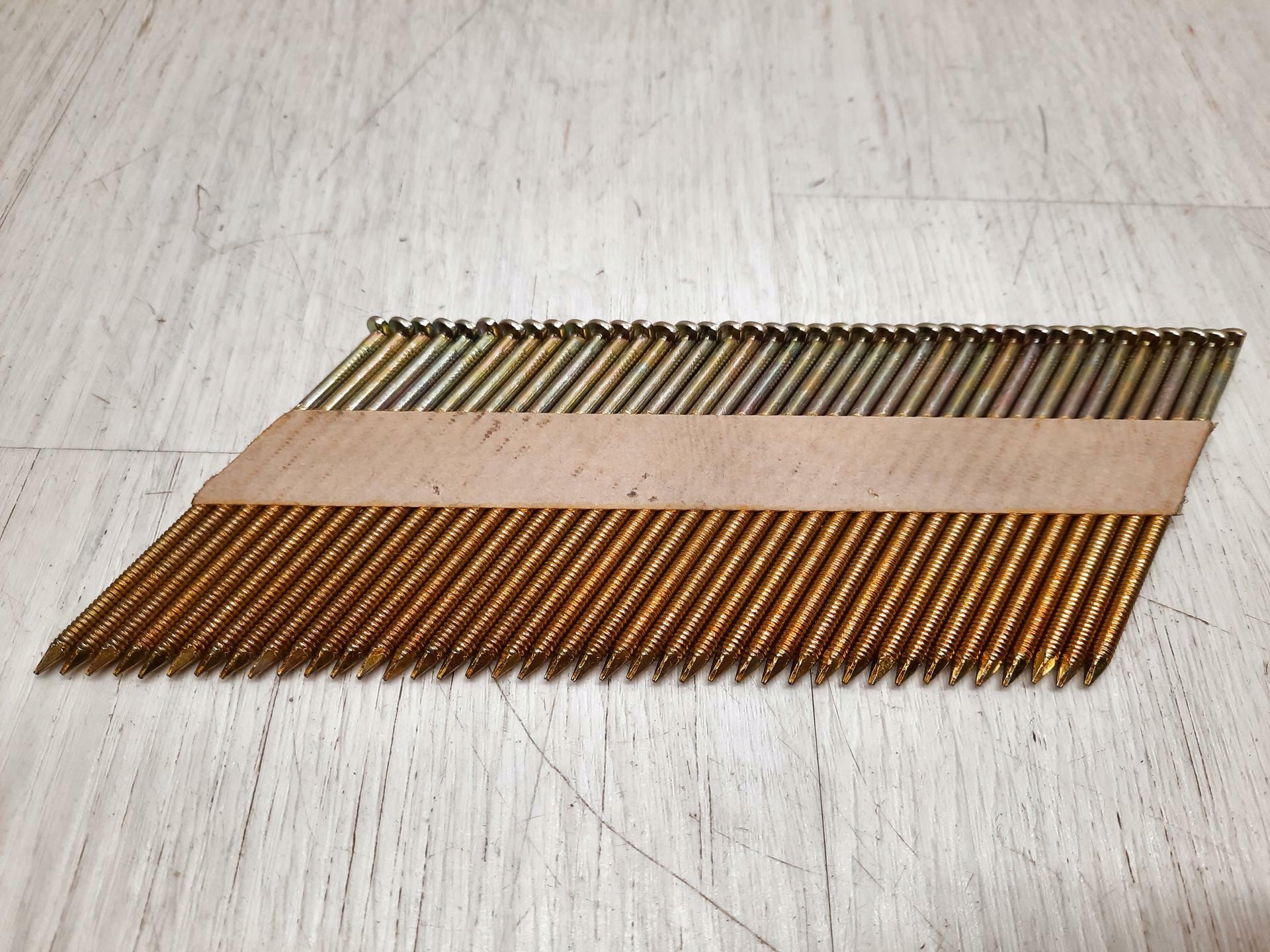 Водонепроницаемый прочный ящик на 1600 гвоздей диаметром 3,1 мм, длиной 75 мм с наклоном 34° и оснащен удобными бумажными полосками