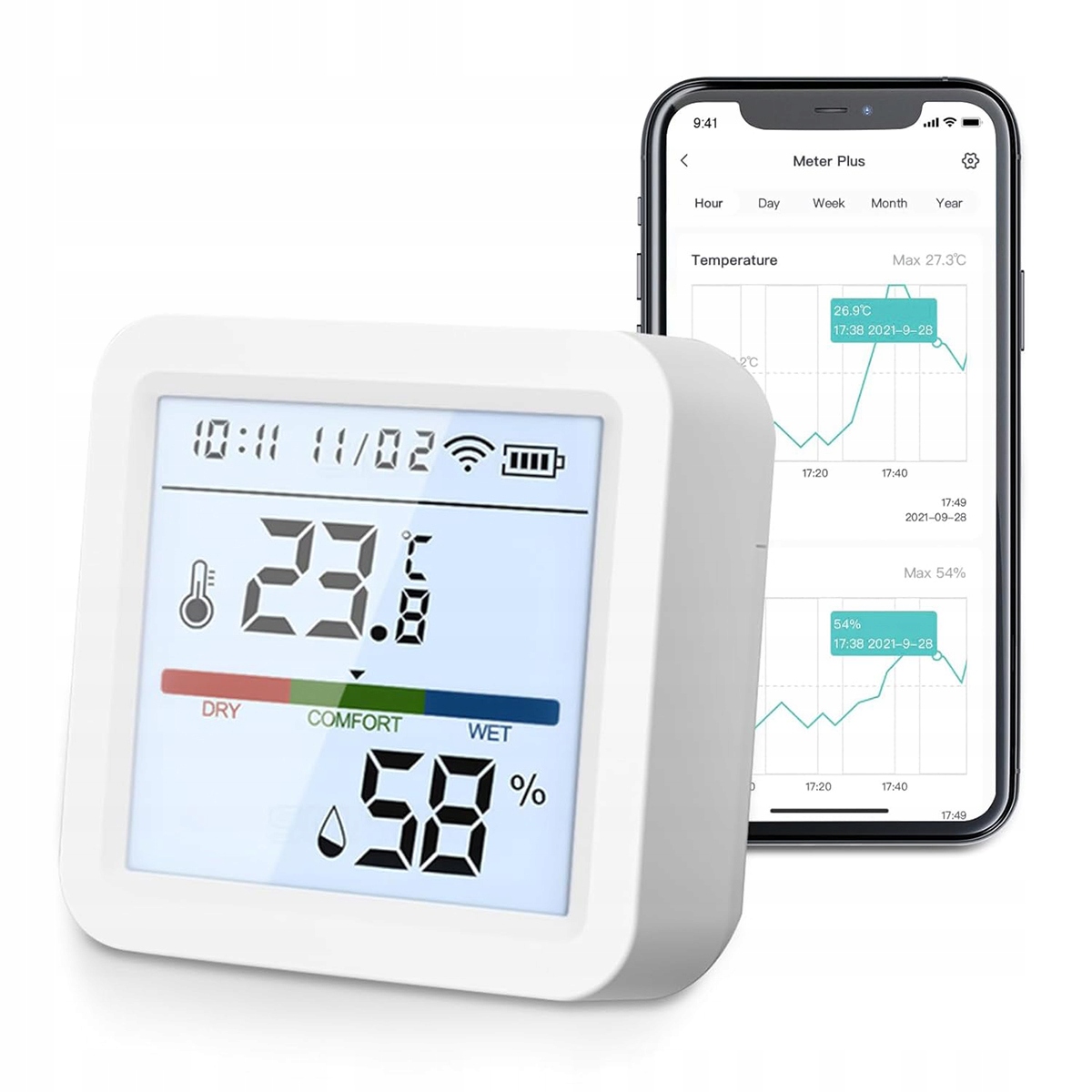 CZUJNIK TEMPERATURY I WILGOTNOŚCI WIFI LIFE TUYA TERMOMETR HIGROMETR LCD