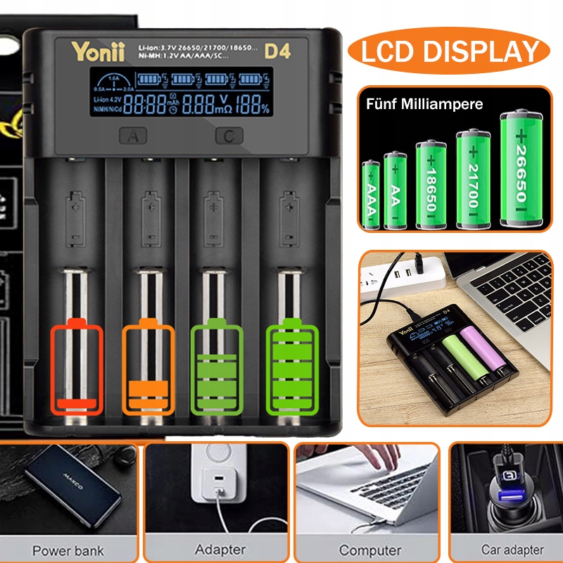 D4 Fast Charger для батарей AA AAA 18650 21700 26650 NI-MH