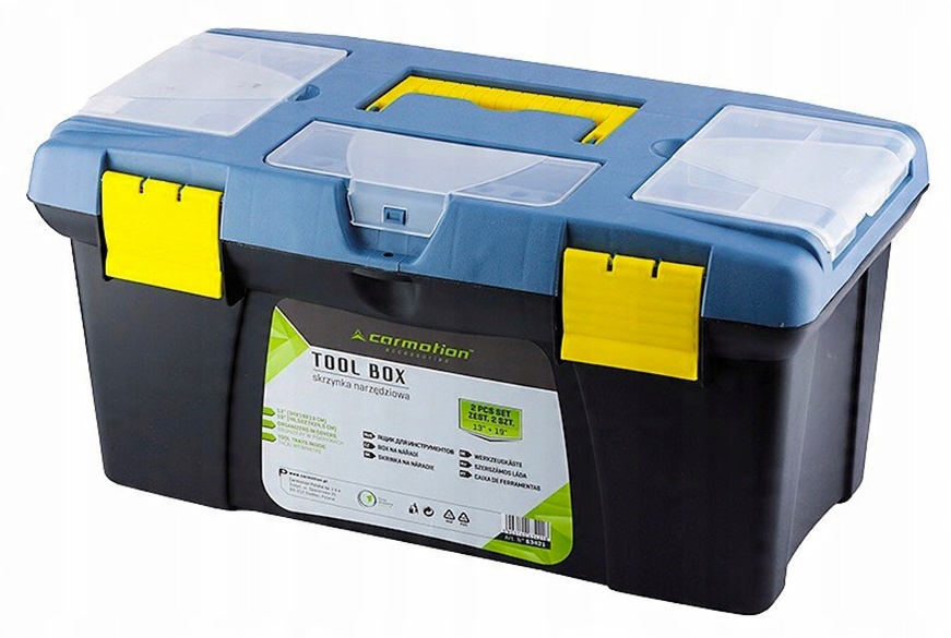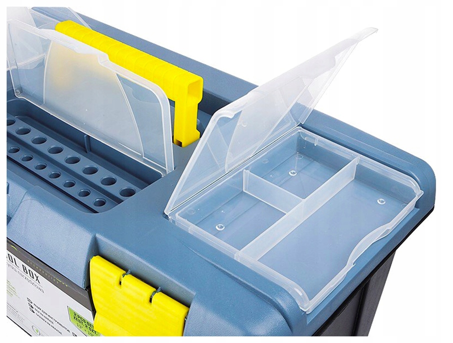 Набор двух профессиональных ящиков для инструментов. Сделано из чрезвычайно прочного пластика. Оснащены сильными защелками, съемными организаторами для винтов, гвоздей и винтов и наборов инструментов для больших и небольших отверток. Возможность закрыть коробки для замков. Внутри лотка для небольших инструментов.
