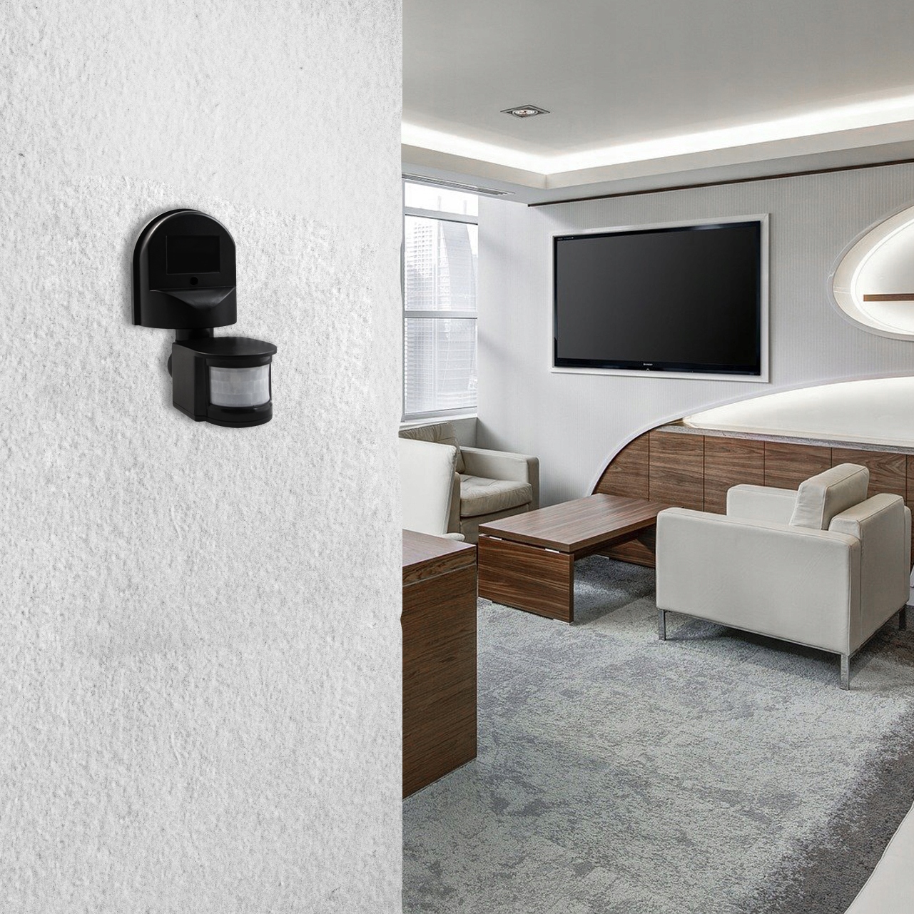 ⏺ Датчик обнаруживает тепло тела человека, и если оно находится в пределах видимости датчика, устройство сработает. Датчик работает как в дневном, так и в ночном режиме.