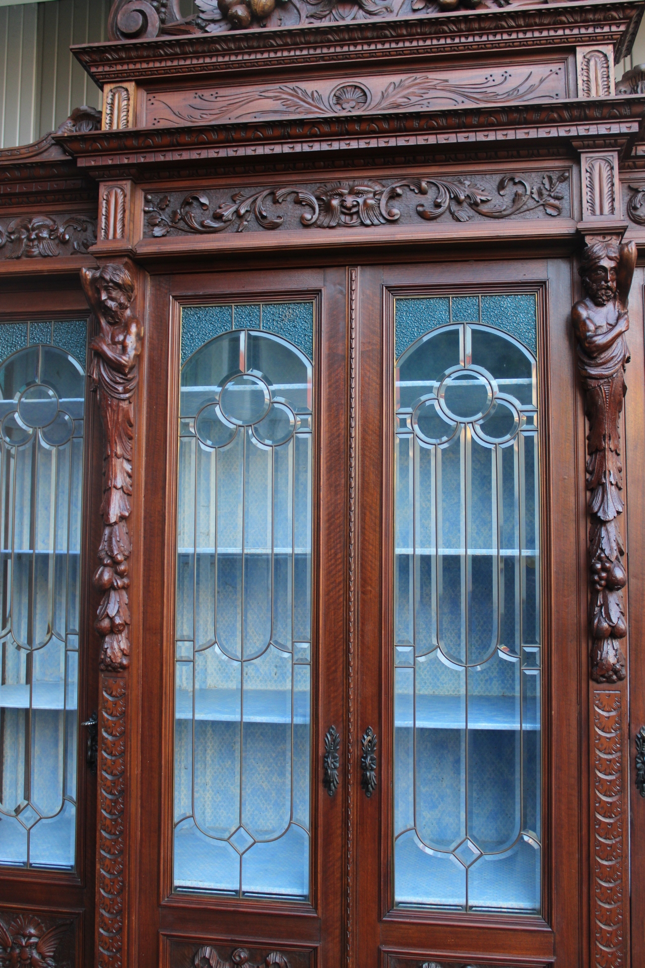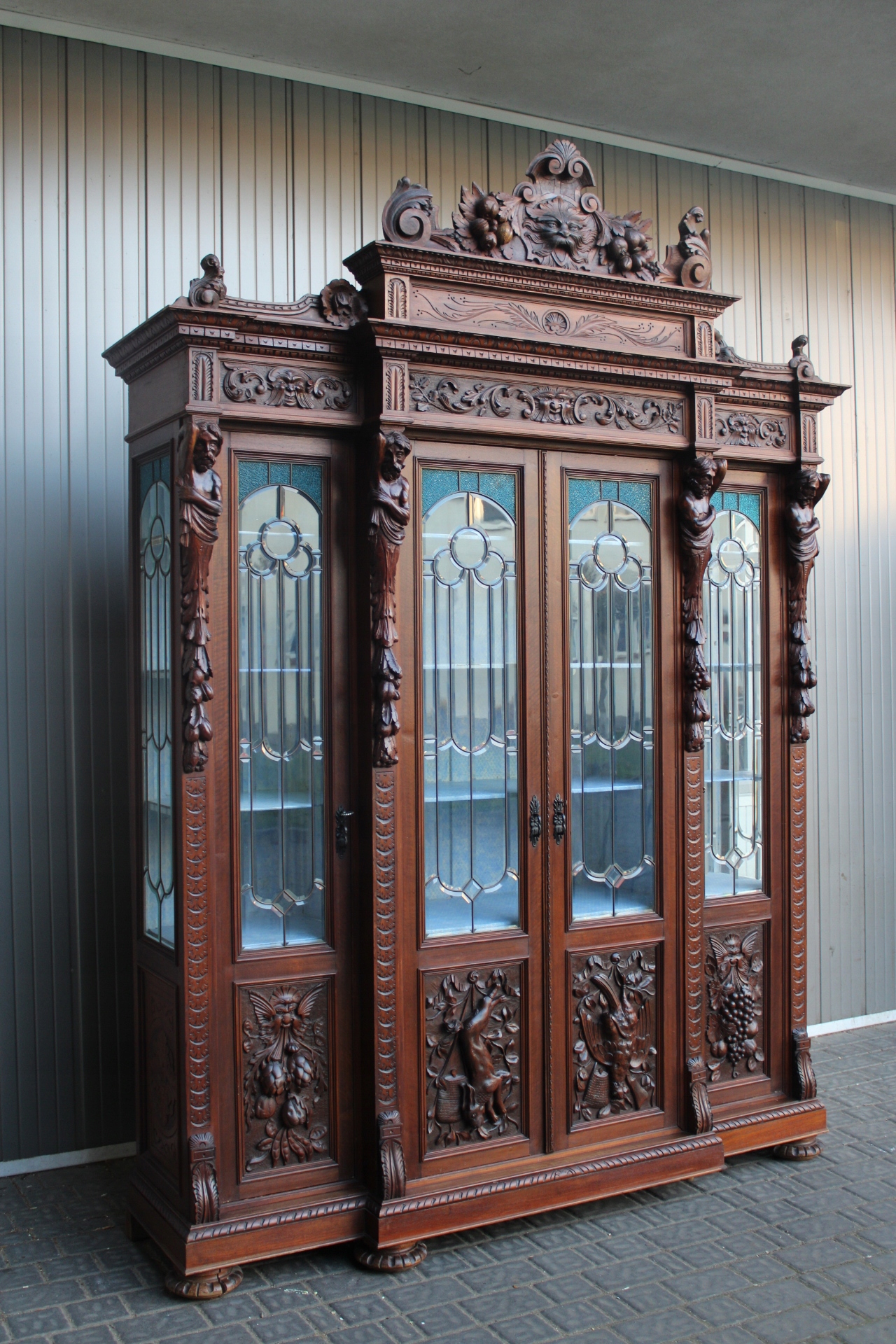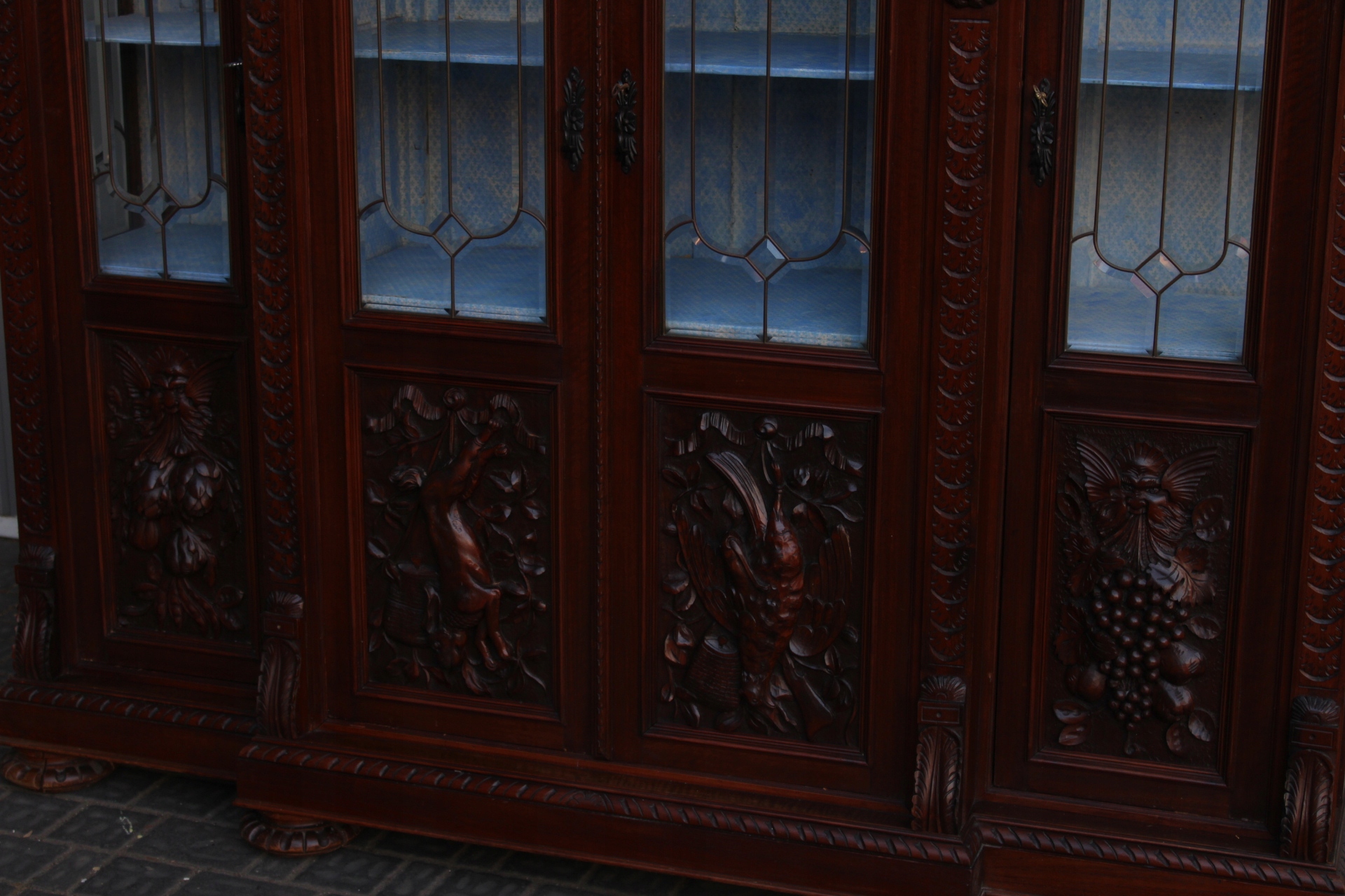 АНТИЧНАЯ МОЩНАЯ ВИТРИНА С ХРУСТАЛЬНЫМИ СКАСКАМИ, ИНТЕНСИВНО ВСТРОЕННЫМИ В ЛАТУННОЕ СТЕКЛО