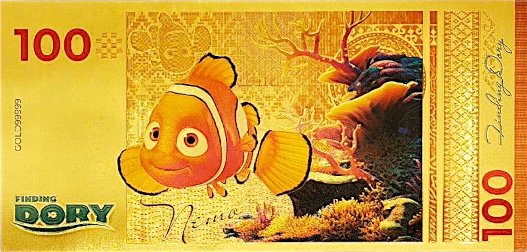 переехать в волшебный подводной мир с уникальной банкнотой коллекционера с помощью сказочного мотива, где Дори и Немо рыба.
