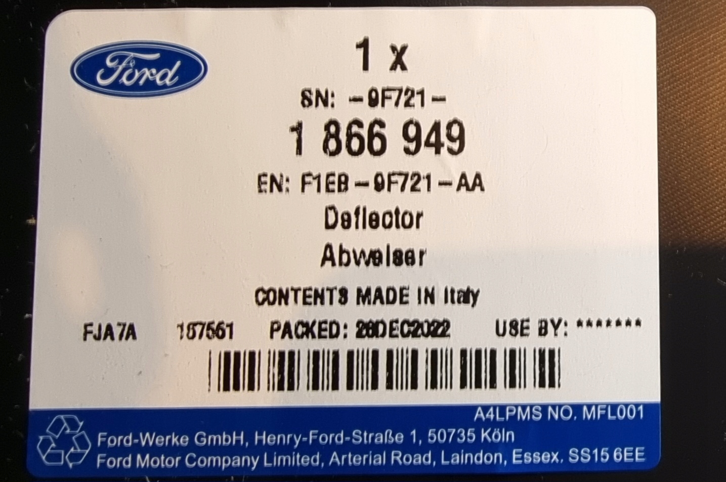ВЫ ПОКУПАЕТЕ ОРИГИНАЛЬНЫЙ ПРОДУКТ ДЛЯ АВТОМОБИЛЕЙ FORD. ВСЕ ЗАПЧАСТИ ОТ FORD POLSKA. ИСПОЛЬЗУЯ ОРИГИНАЛЬНЫЕ ЗАПЧАСТИ FORD, ВЫ МОЖЕТЕ БЫТЬ УВЕРЕНЫ В КАЧЕСТВЕ И НАДЕЖНОСТИ, НО В первую очередь ВЫ ПОЛУЧИТЕ БЕЗОПАСНЫЙ ТОВАР, ПРЕДНАЗНАЧЕННЫЙ ПРОИЗВОДИТЕЛЕМ ДЛЯ ВАШЕГО АВТОМОБИЛЯ.