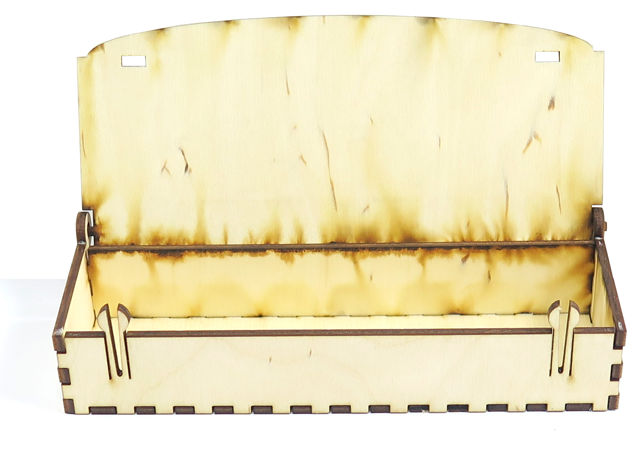 Ящик из фанеры толщиной 3 мм с открывающейся крышкой и защелкой.Внешние размеры: 17х5х3см.