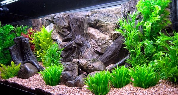 Они также отлично смотрятся в террариумах, где они являются оригинальными, имитирующими настоящие камни украшения и в то же время, укрытие для маленьких ящериц и змей. Вы, чтобы получить декоративный вид танка и сделать исключительно эффективное впечатление. Примеры аквариумных расположений с различными породами и структурными фоном