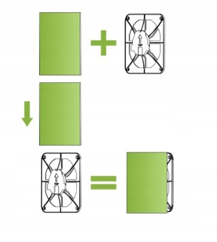 Пример схемы установки на решетку - доступен для покупки на наших аукционах после ввода кода 02-300. Решетка и панель крепятся непосредственно на стену без вентилятора, чаще всего в случае самотечной вентиляции.