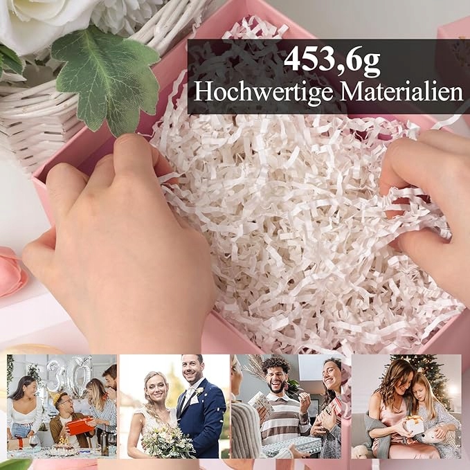 Универсальность - заполнительный материал для подарков имеет много возможностей использования, от использования в качестве бумаги, раздавленного до подарков до подарков для защиты или украшения художественных продуктов. Его также можно использовать в качестве бумажных чипсов для домашних животных или в качестве пасхальной травы.