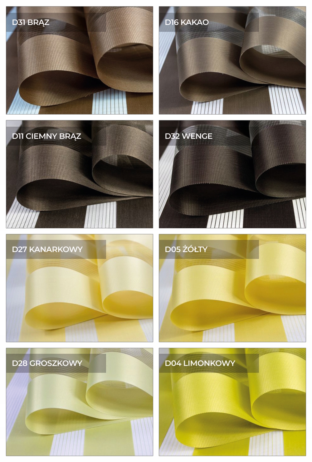 Как ролик -слепой производитель, мы подготовились для вас самый большой выбор популярных цветов на Allegro. Вы наткнулись на предложение, где вы обязательно выберите цвет, подходящий для вашей комнаты. Вы можете успешно использовать жалюзи на кухне, гостиной, спальне, зале, ванной комнате, детской комнате и других.