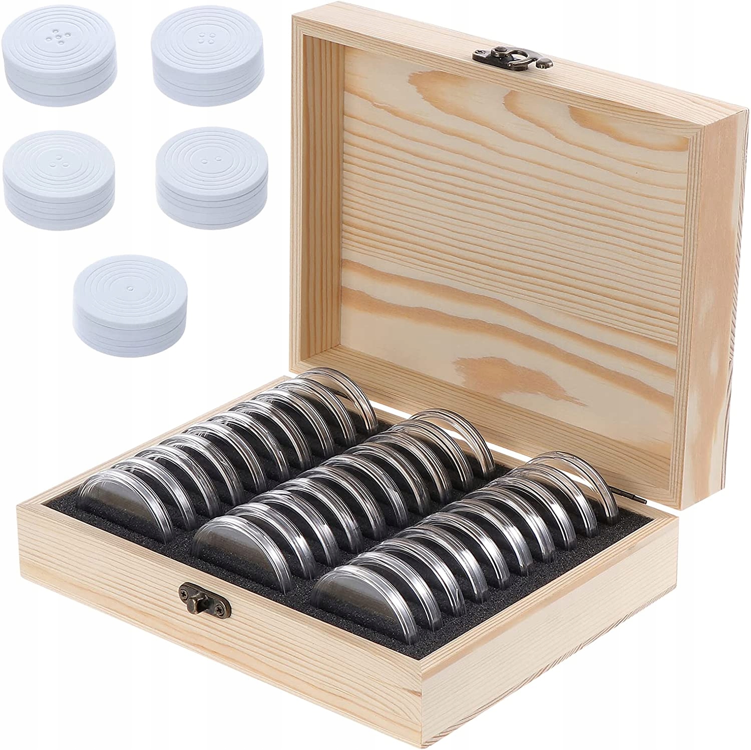 ⭐【Ящик для хранения монет】 Изготовленный из высококачественной сосновой древесины, ящик для монет вмещает 30 пластиковых капсул для монет. Деревянная монетница практична и долговечна и идеально подходит для защиты капсул для монет и поддержания их чистоты и порядка.
