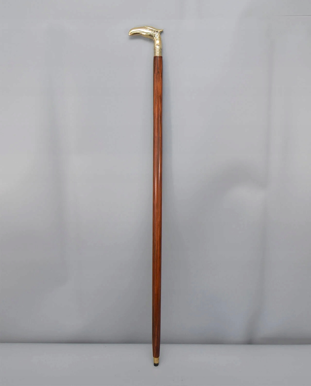 Ходящая цыпочка с ручкой в классической форме, украшенной базарекой головы орла. Эта красивая и оригинальная цыпочка сделана из высококачественных материалов. Ядро цыпочки сделано из сильного букового дерева, лакированного в элегантном коричневом оттенке, отделанной резиновой ногой. Ручка изготовлена из полированной латуни.