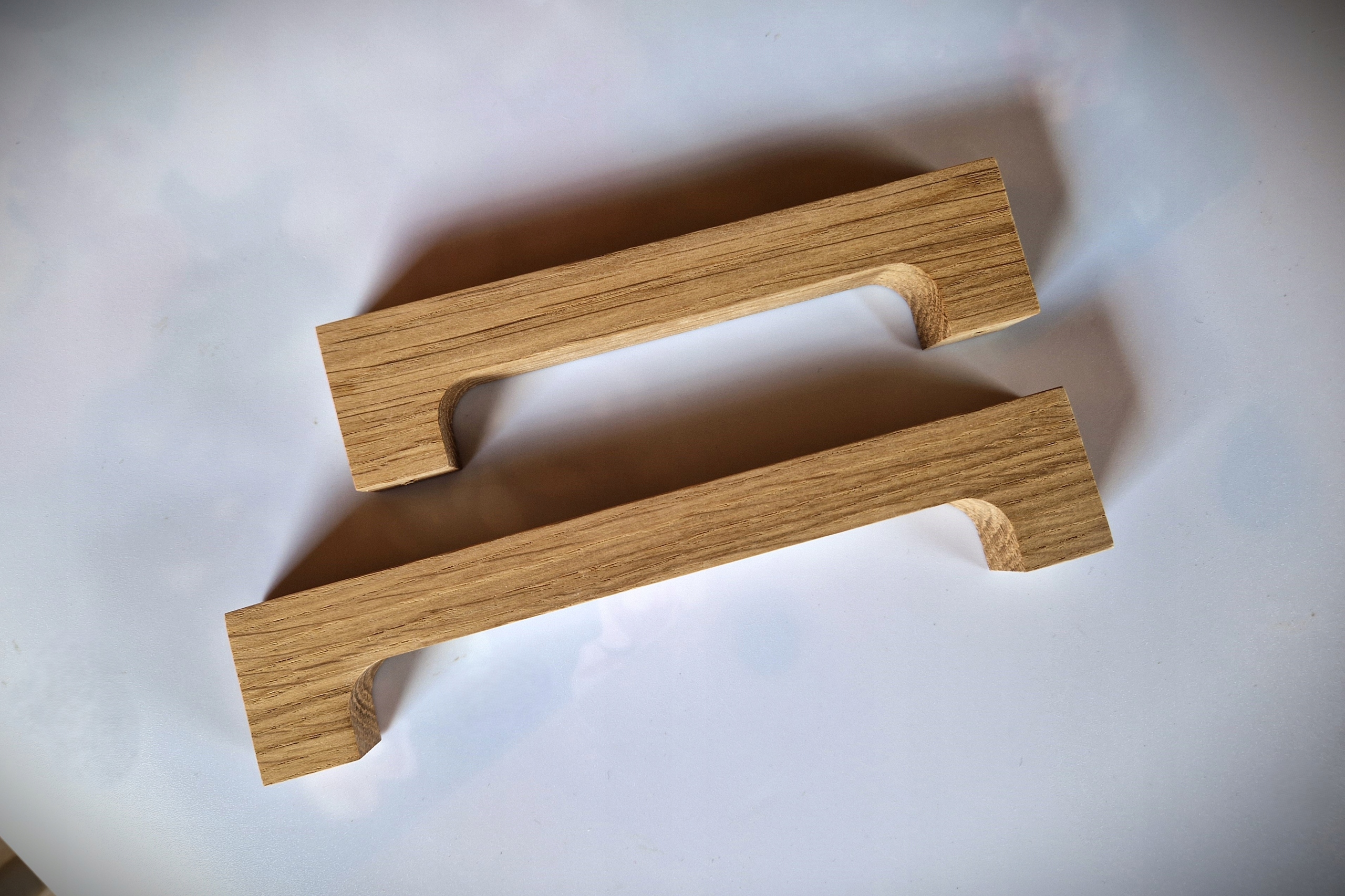Деревянные ручки из массива дуба — отличная альтернатива популярным пластиковым или мебельным ручкам. Естественная красота массива дерева идеально будет сочетаться с белыми (или черными) кухонными шкафами, фасадом шкафа в прихожей или спальне.