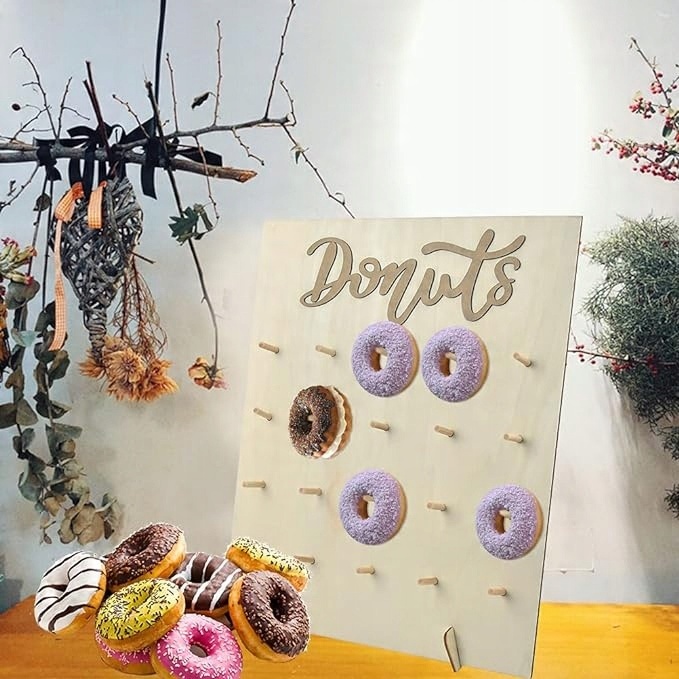 - Многоразовая доска для пончиков: наша настенная подставка для пончиков изготовлена из толстого дерева. фанера, плохо гнется и может использоваться долгое время. Просто протрите влажной тряпкой или тряпкой и ее можно будет использовать повторно. Наша стена для пончиков — идеальная альтернатива праздничным тортам: просто наполните ее любимыми пончиками. Это идеальный десерт после ужина или во время танцев.