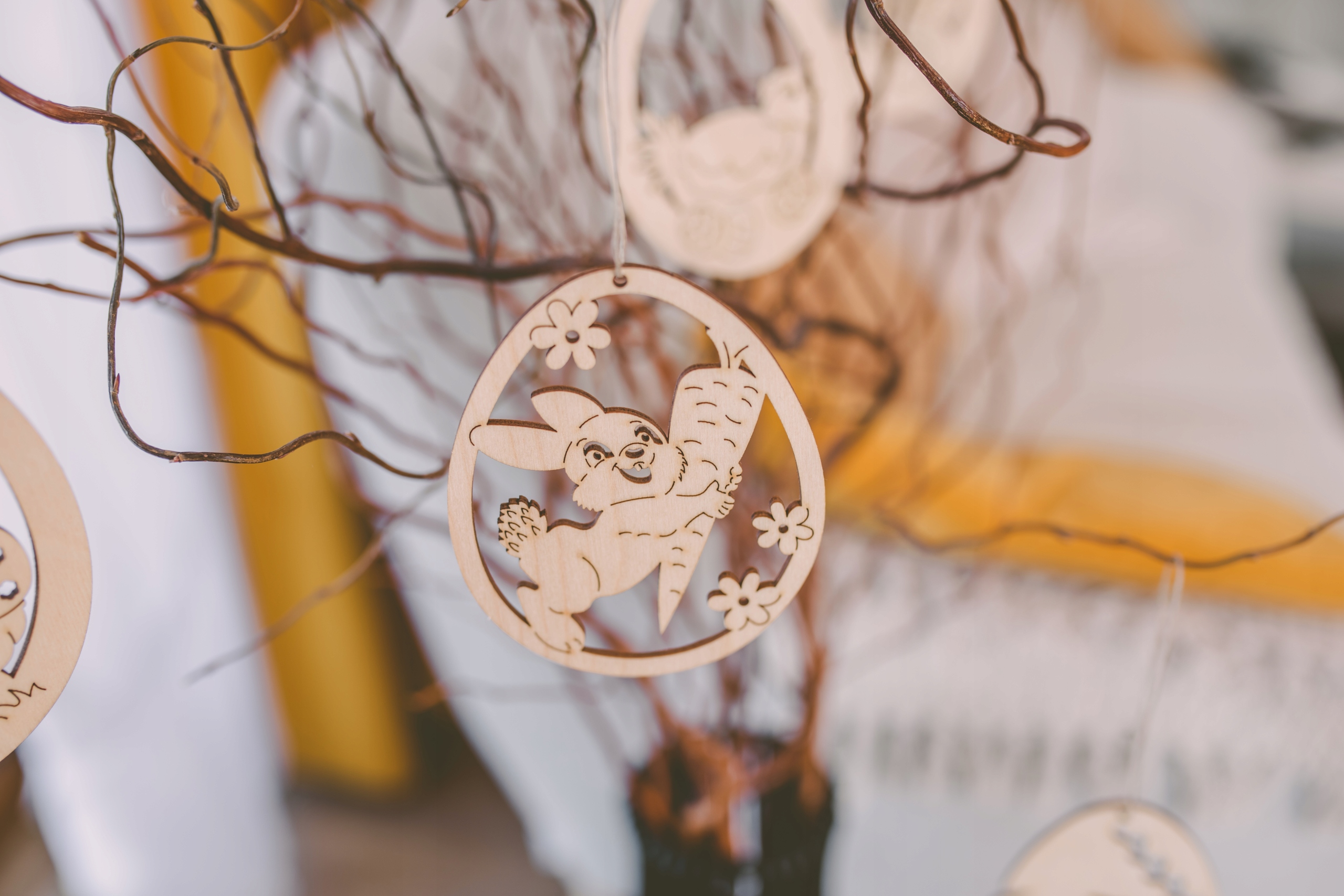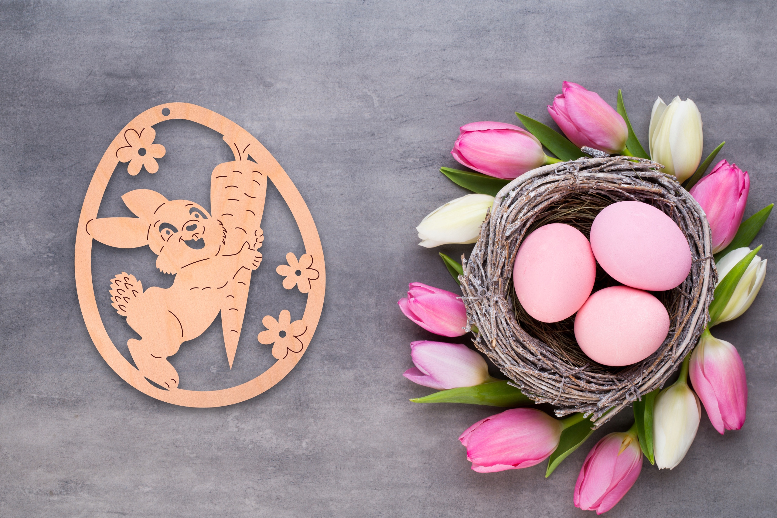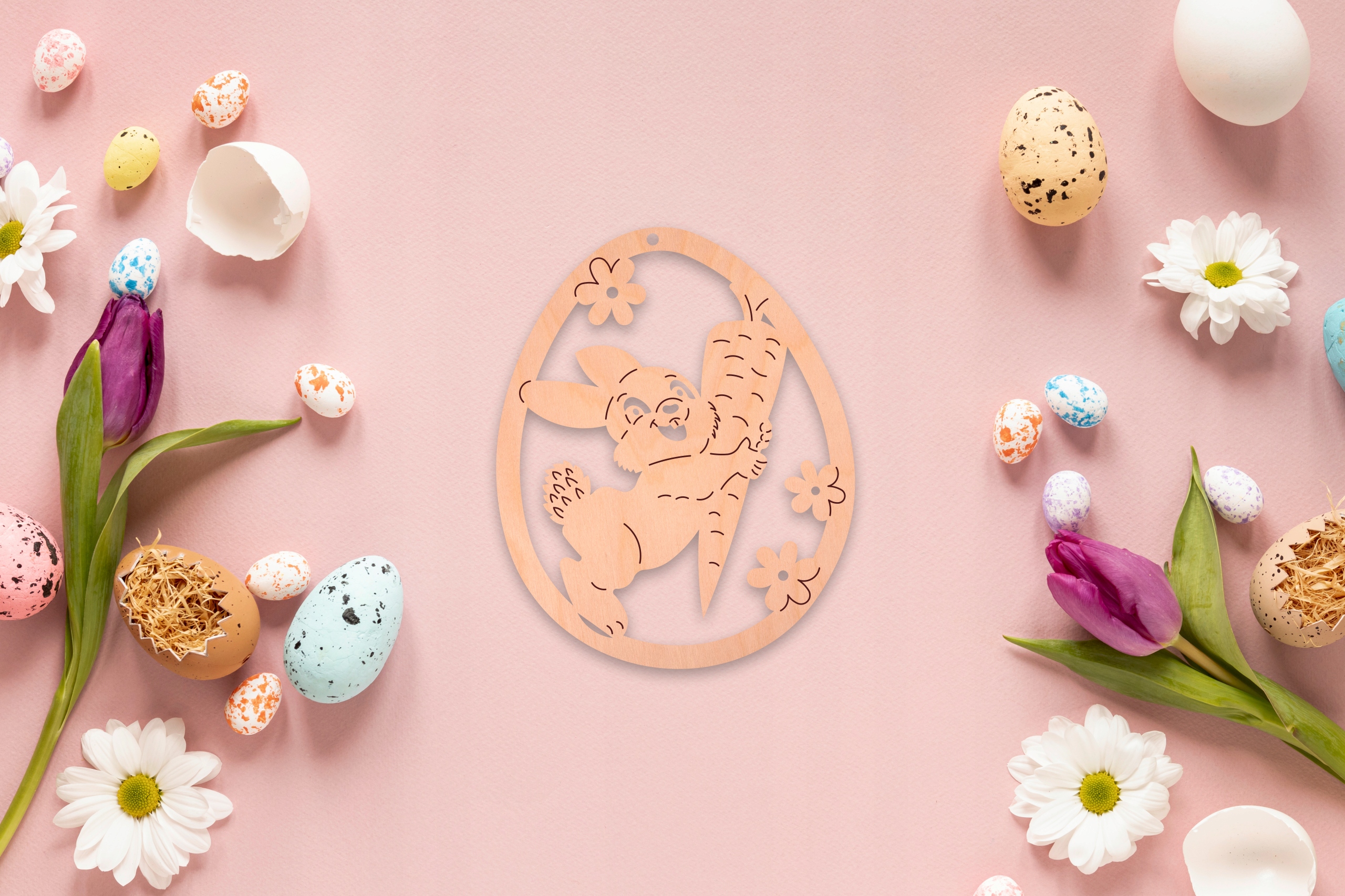 Дерев'яна підвіска ВЕЛИКДЕНЬ, писанка, ЯЙЦЕ, кролик