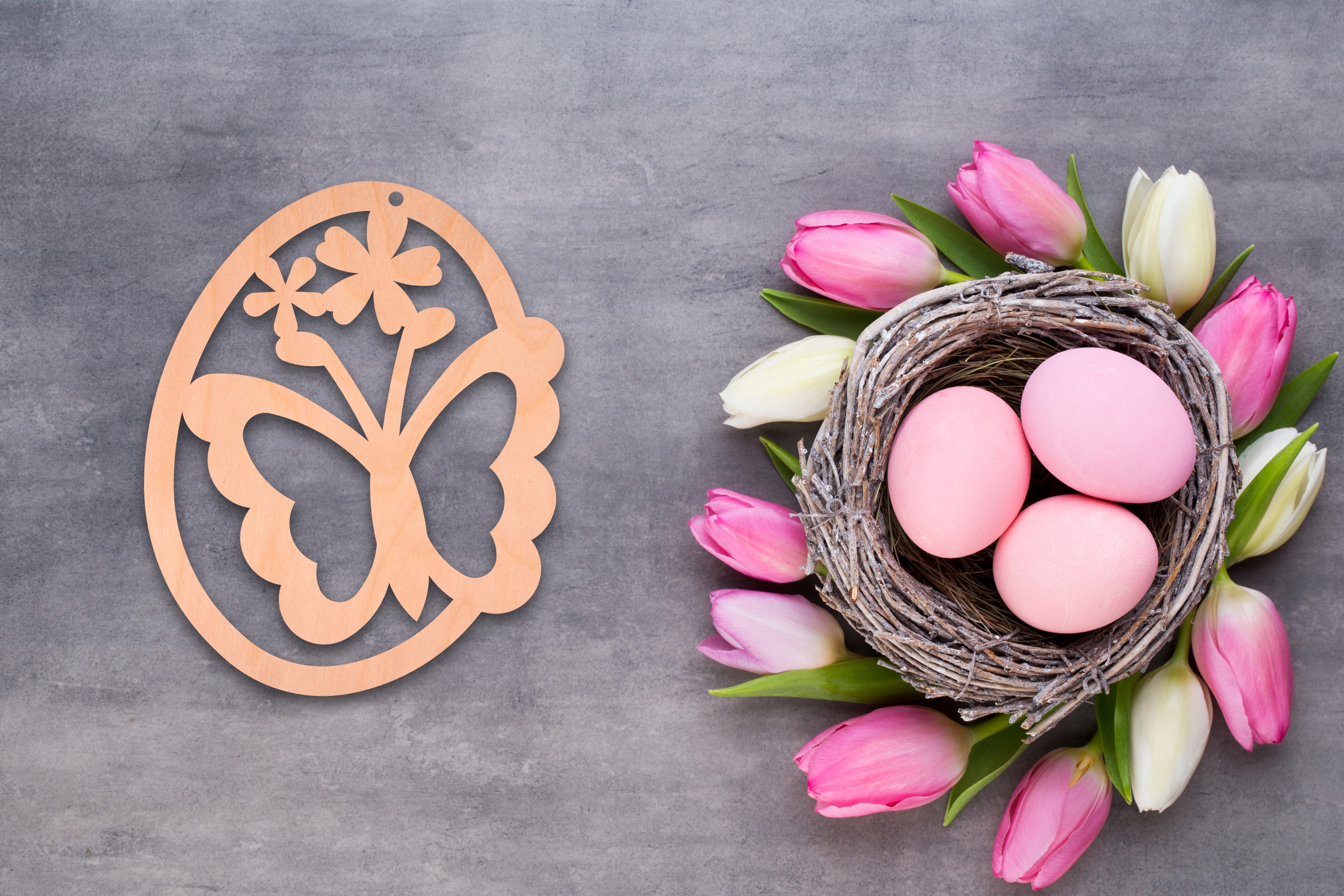 Дерев'яна підвіска ВЕЛИКДЕНЬ, писанка, ЯЙЦЕ, метелик