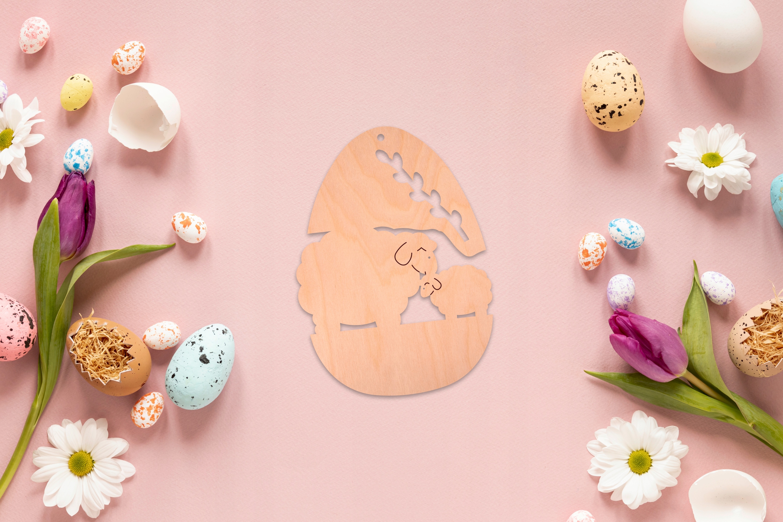 Дерев'яна підвіска ВЕЛИКДЕНЬ, писанка, Яйце ягня