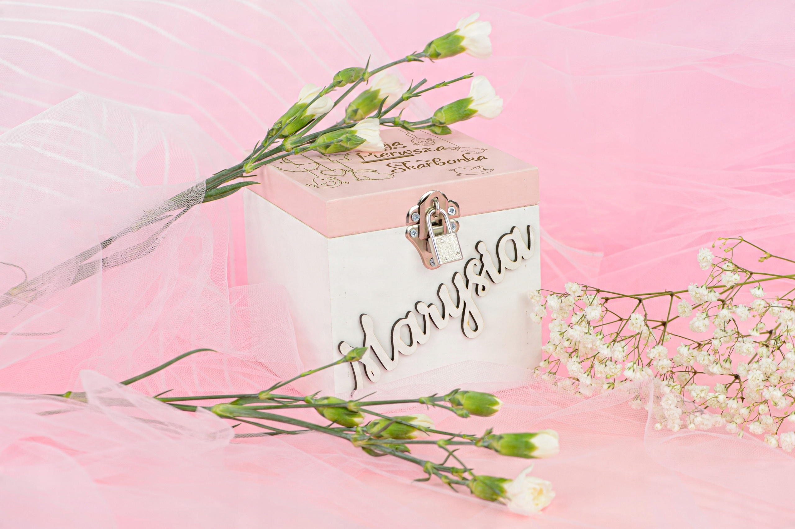 ДЕРЕВЯННАЯ БЕЛАЯ КОПИЛКА С ГРАВИРОВКОЙ СВАДЕБНОЕ КРЕЩЕНИЕ