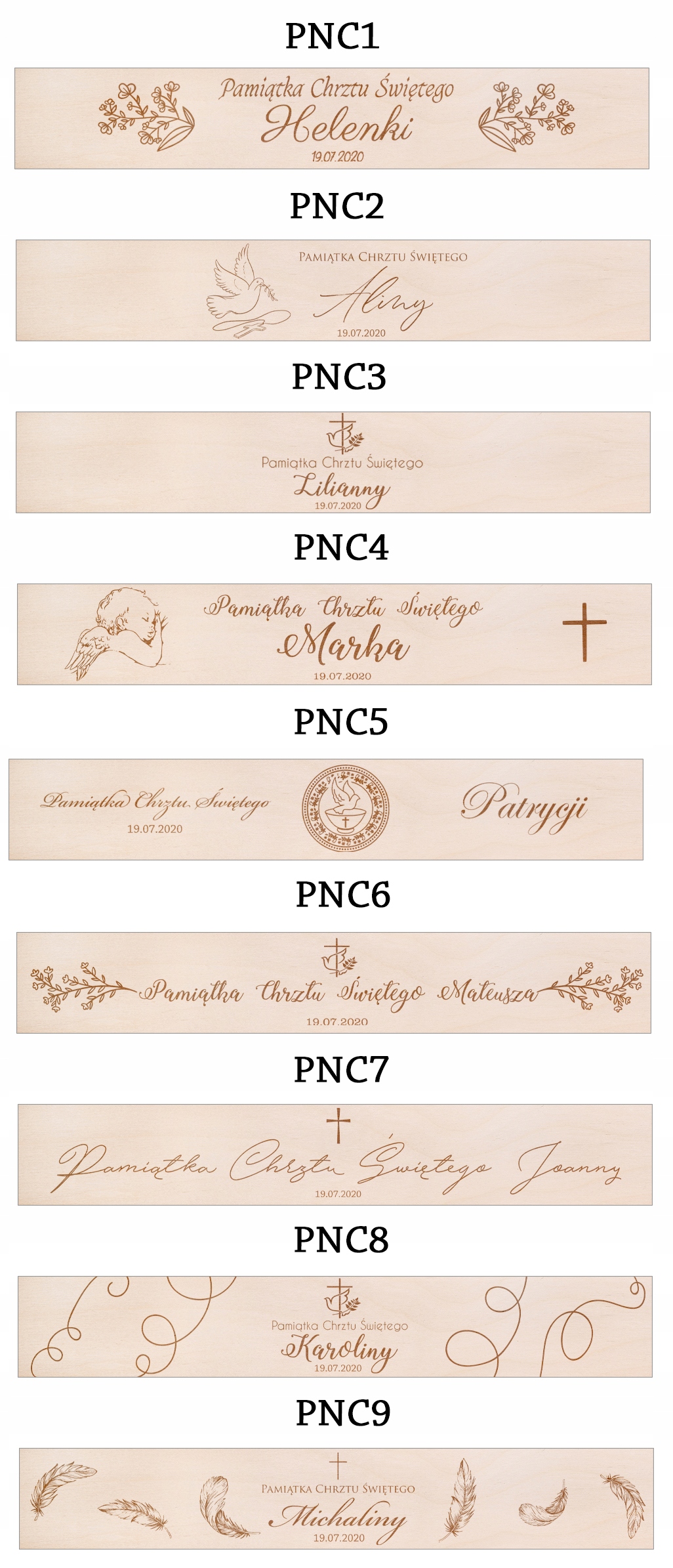 2. КОРОБКА: Выберите образец гравировки, укажите измененное имя + дату крещения