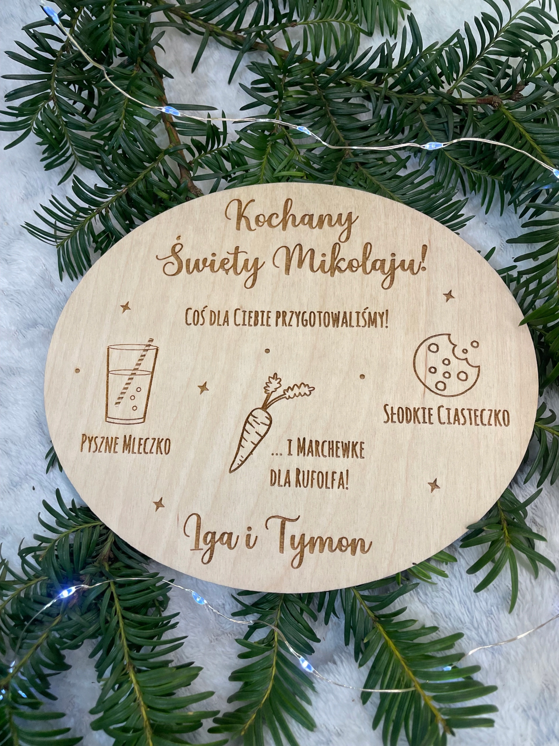 ДЕРЕВ'ЯНА ТАРІЛКА ДЕКОРАТИВНА ПІДНОС ДЛЯ САНТИ ПІД ЯЛИНКУ ПОДАРУНОК + ІМ'Я