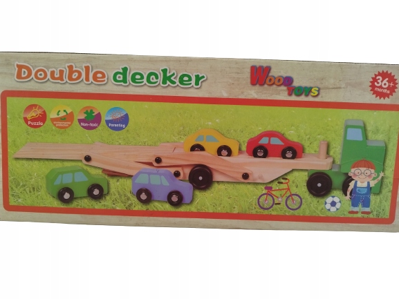 Отличная игрушка для автолюбителей. Благодаря деревянному прицепу можно перевозить несколько автомобилей одновременно.