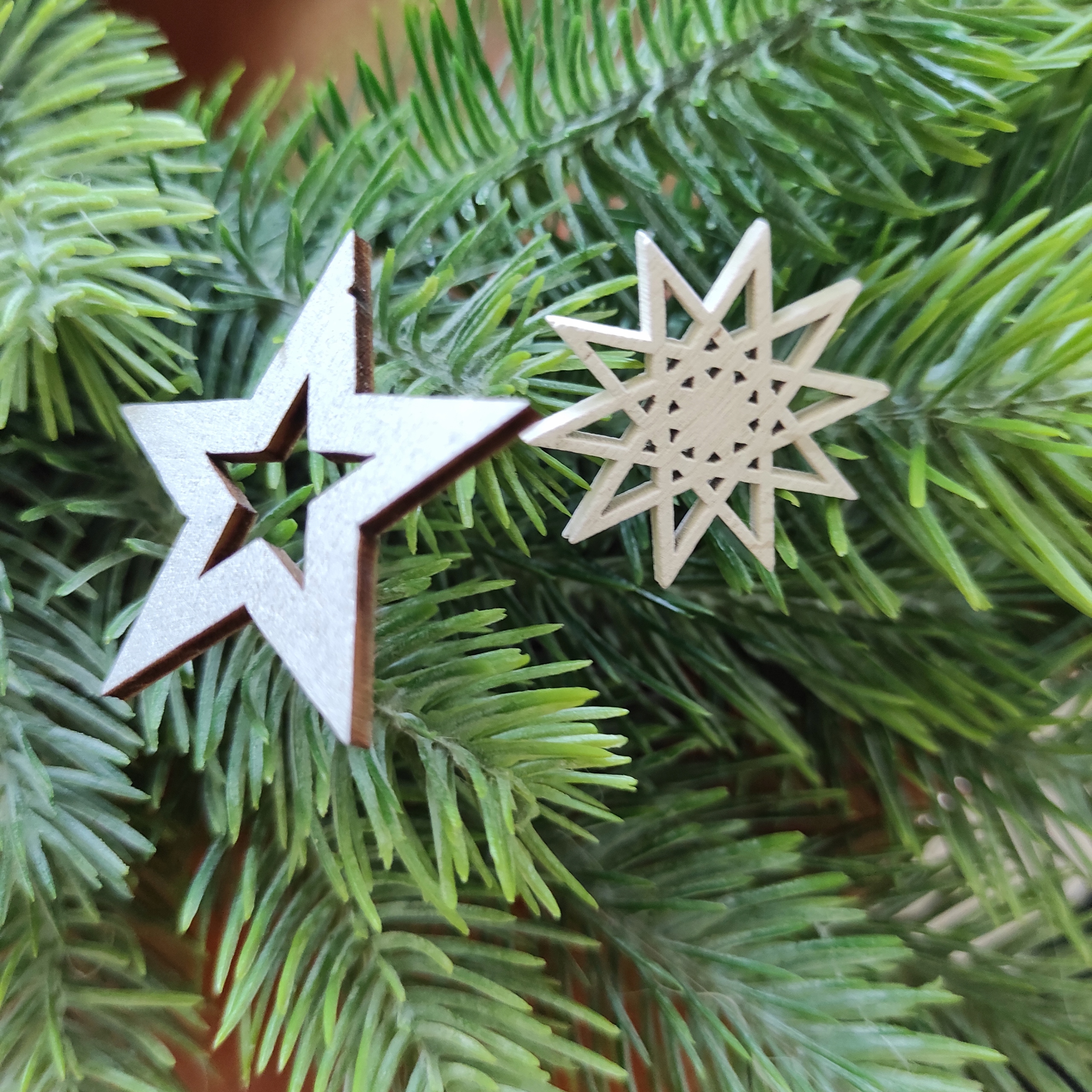 Дерев'яна витинанка з різдвяними зірками, 12 шт. НАБІР №1 декоративний дерев