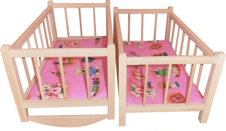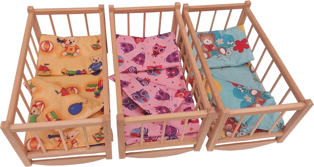 Деревянная кроватка для кукол - колыбель + постельное белье