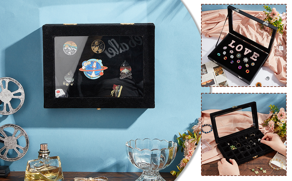 - С прозрачной стеклянной крышкой, которая четко отображает хранящиеся значки и защищает от пыли.