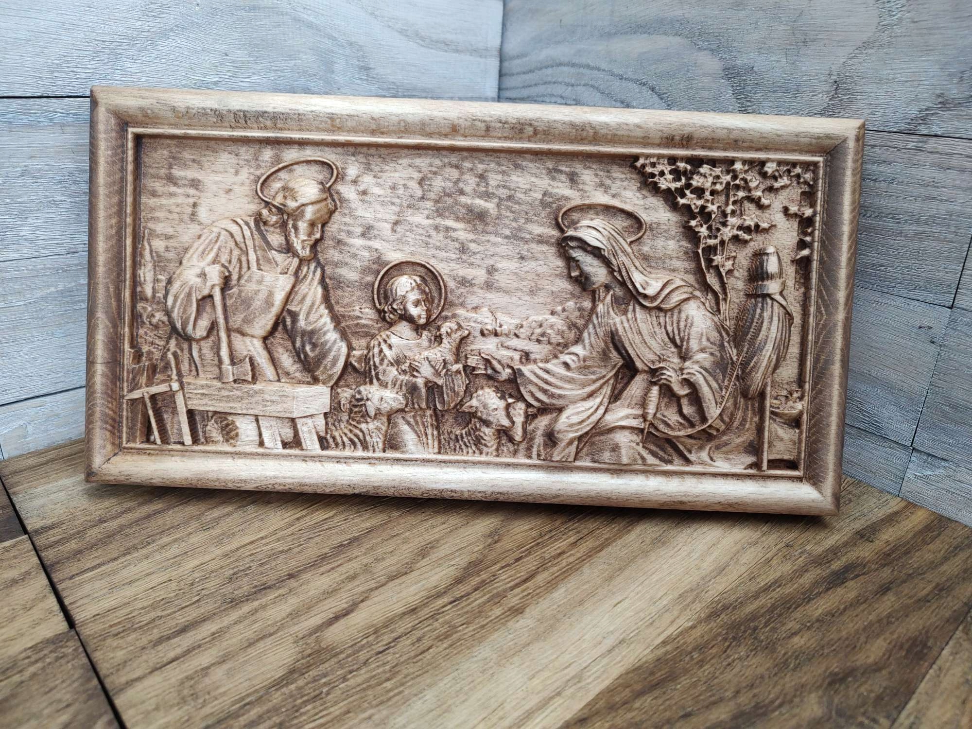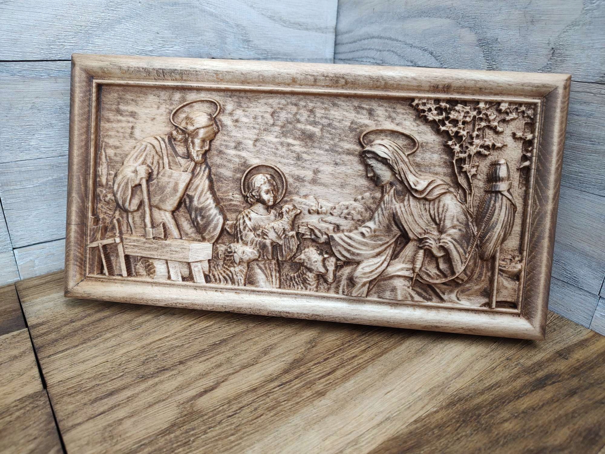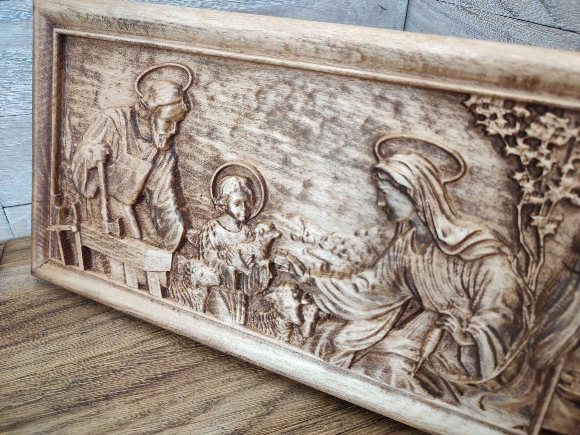 Дерев'яний барельєф із зображенням Пресвятої родини VI у рамці 30 см з річницею весілля
