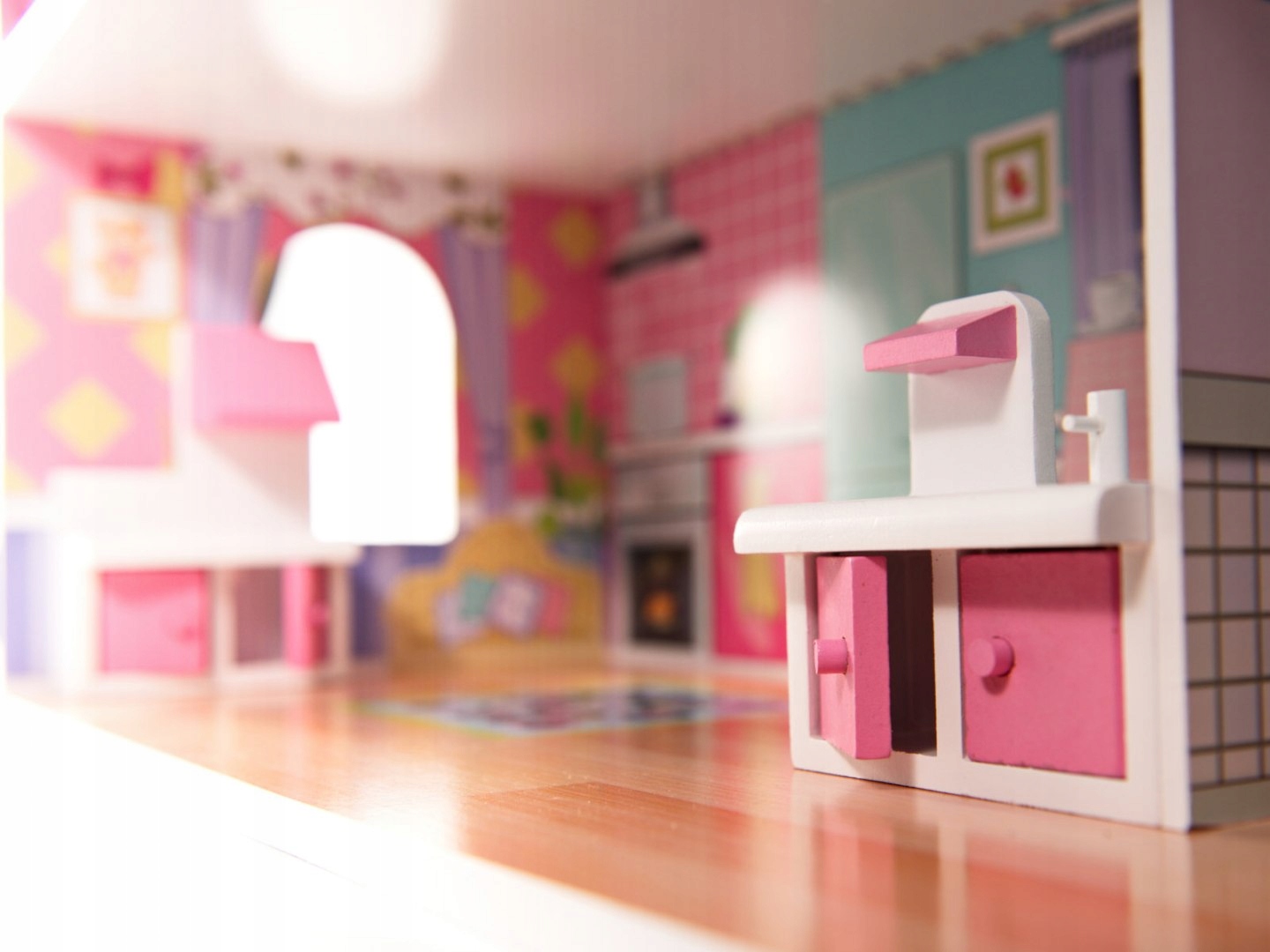 миниатюры мебели и графики на стенах делают наши кукольные дома уникальными и очень уютными. Предоставьте его своему ребенку! Все элементы дома были тщательно отполированы таким образом, что во время игры ни один сплест попадает в руку ребенка. Наши деревянные кукольные дома не только гарантируют очень веселое, но также станут отличным украшением для детской комнаты. Идеально стимулировать воображение, поощрять творческое и нетрадиционное мышление , а также отличное развить ручные навыки в самых молодых. Создание дома научит детей сотрудничать и поддерживать развитие их социальных компетенций