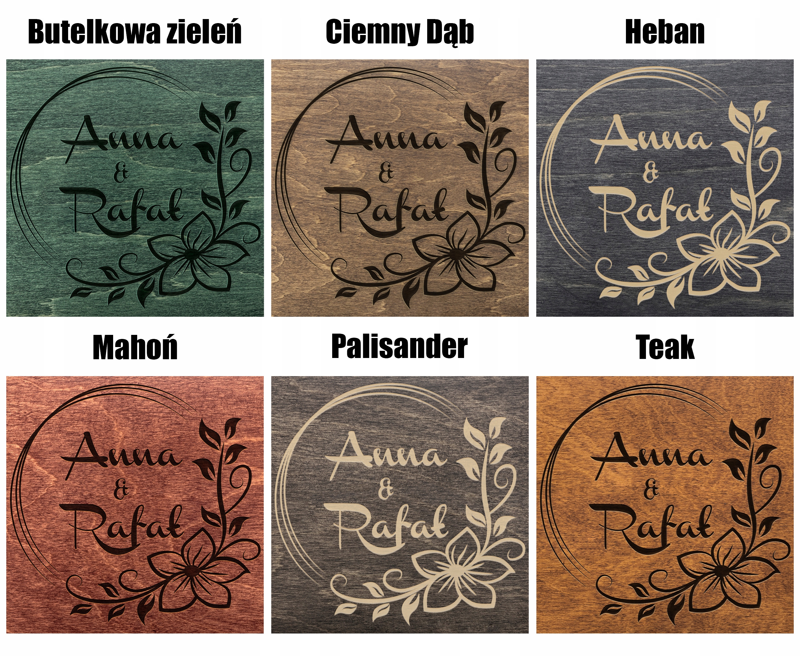(Выбранный цвет одновременно применяется к древесине и гравировке - в соответствии со следующими фотографиями)