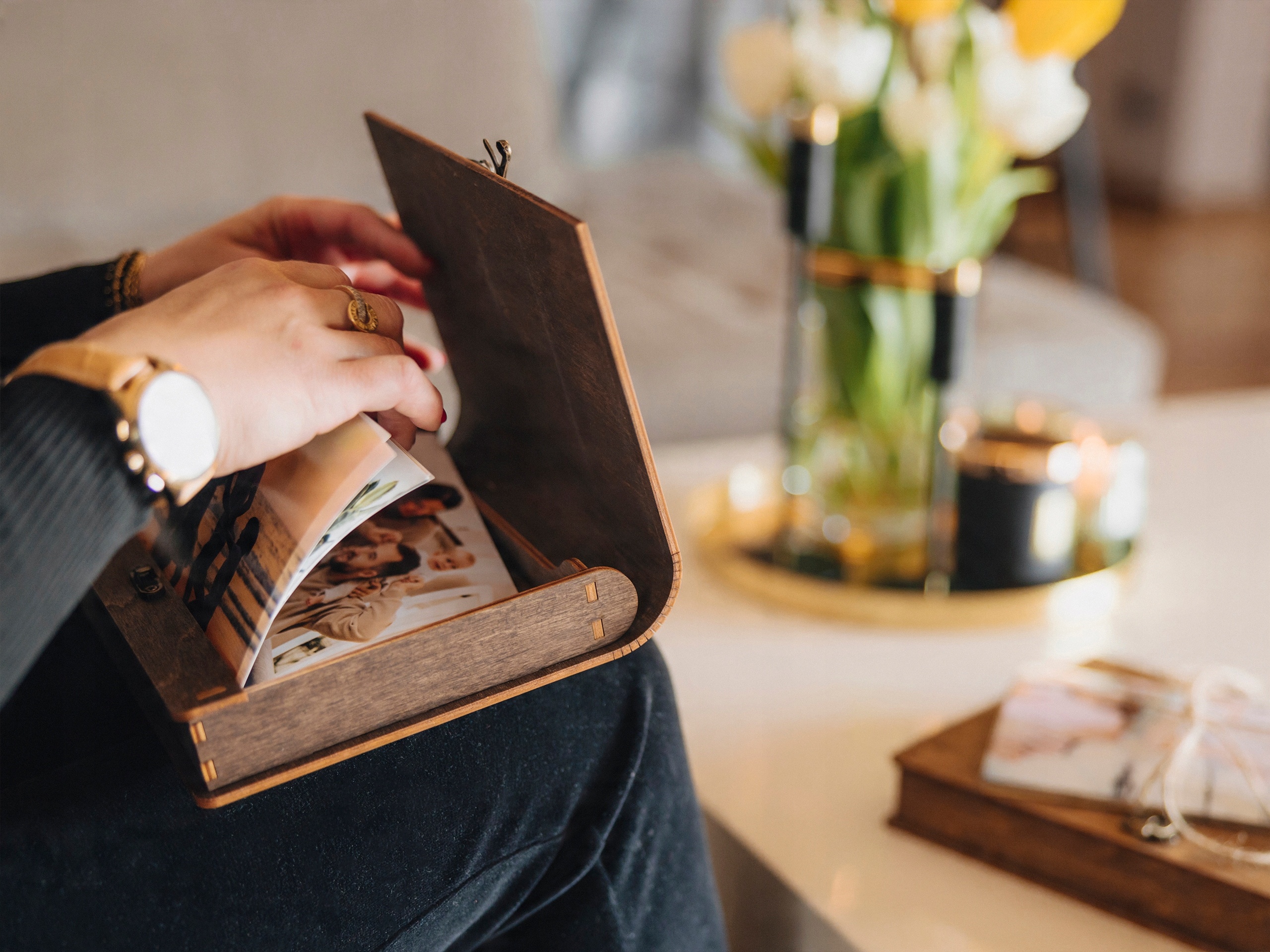 Деревянная коробка для фотографий, красивый подарок! >