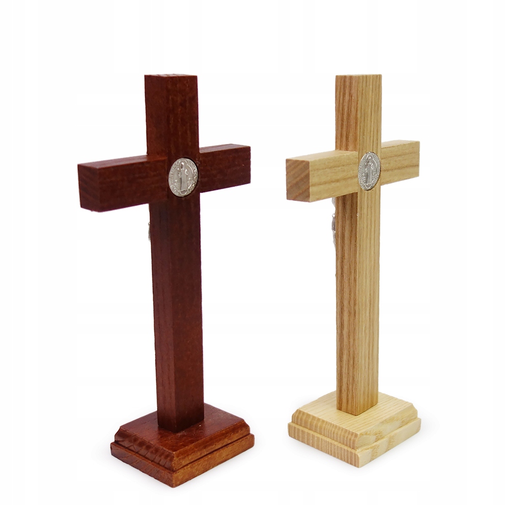 Традиционные стоячие бенедиктинские кресты высотой 17,5 см, деревянные. Вместо нимба – медальон Святого. Бенедикт, символизирующий заботу и защиту от зла.