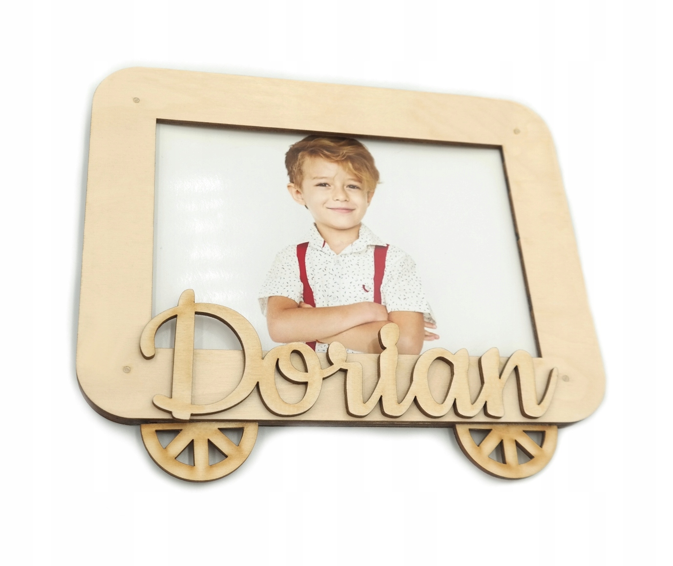 Деревянная вертикальная рамка-вагончик (054) для фото С ЛЮБЫМ ИМЕНЕМ + БЕСПЛАТНОЕ фото