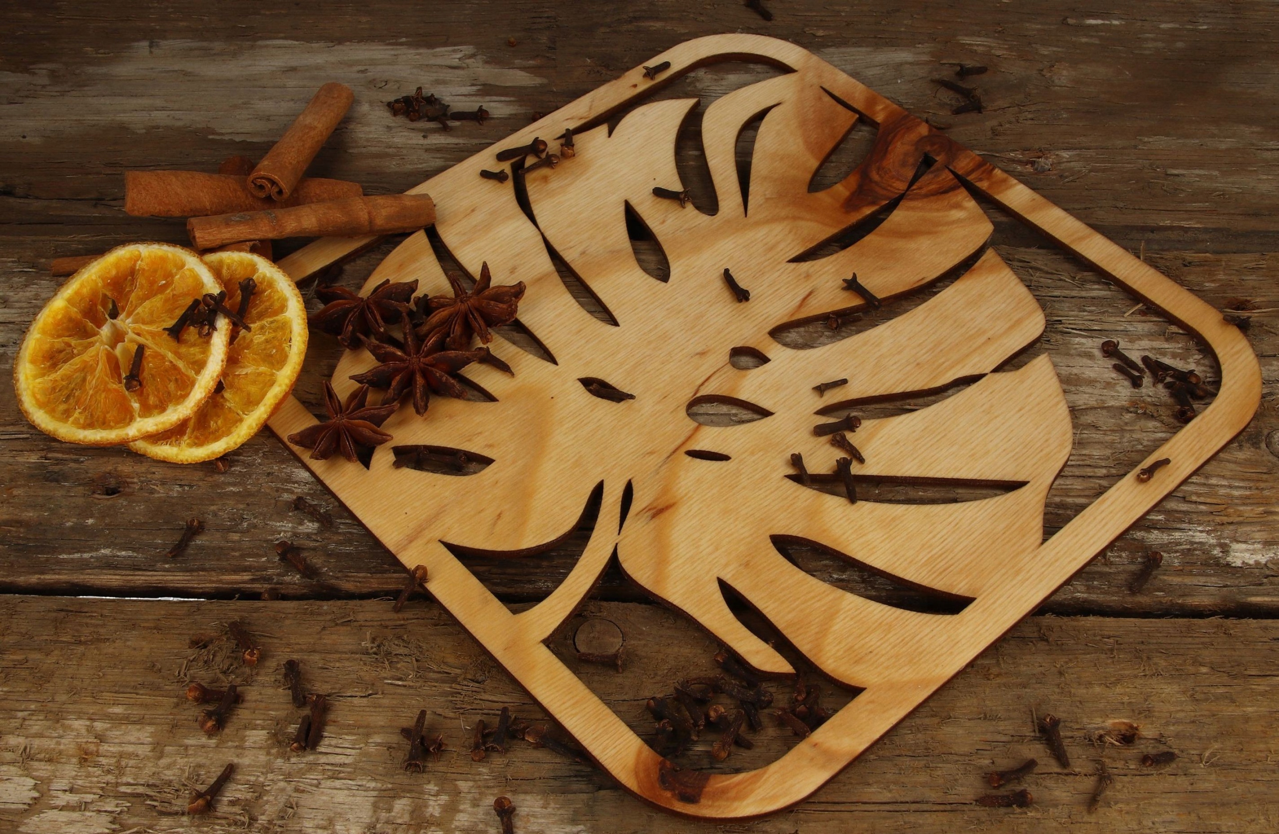 Деревянный коврик находился под прокладкой под монстером Liśc 30 см h1> Деревянная пластинка - идеальное дополнение к расположению вашего интерьера. Практический и чрезвычайно эстетический продукт будет отличным в каждой кухне и столовой. 4 мм;