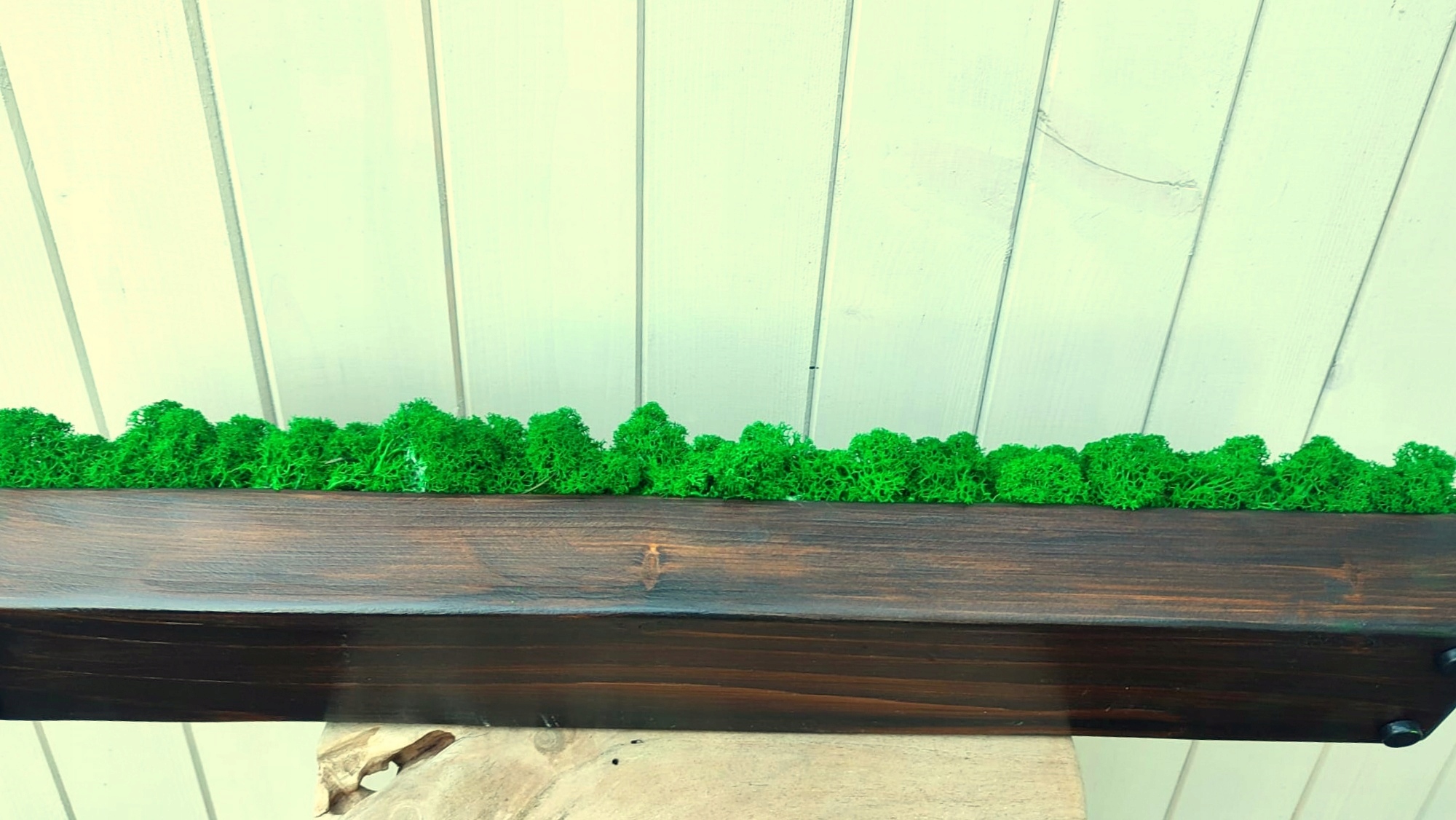 Деревянный цветочный горшок с мхом CHERRY MOSS в длинном горшке 40 см, декор