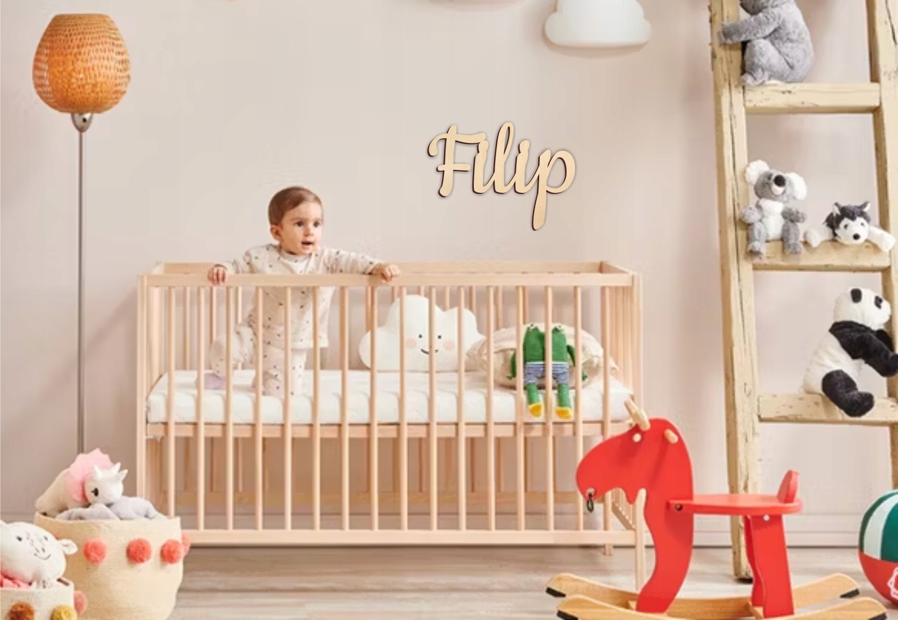 Имя можно приклеить на стену с помощью монтажного скотча, специальных «самоклейок» или повесить на гвозди.