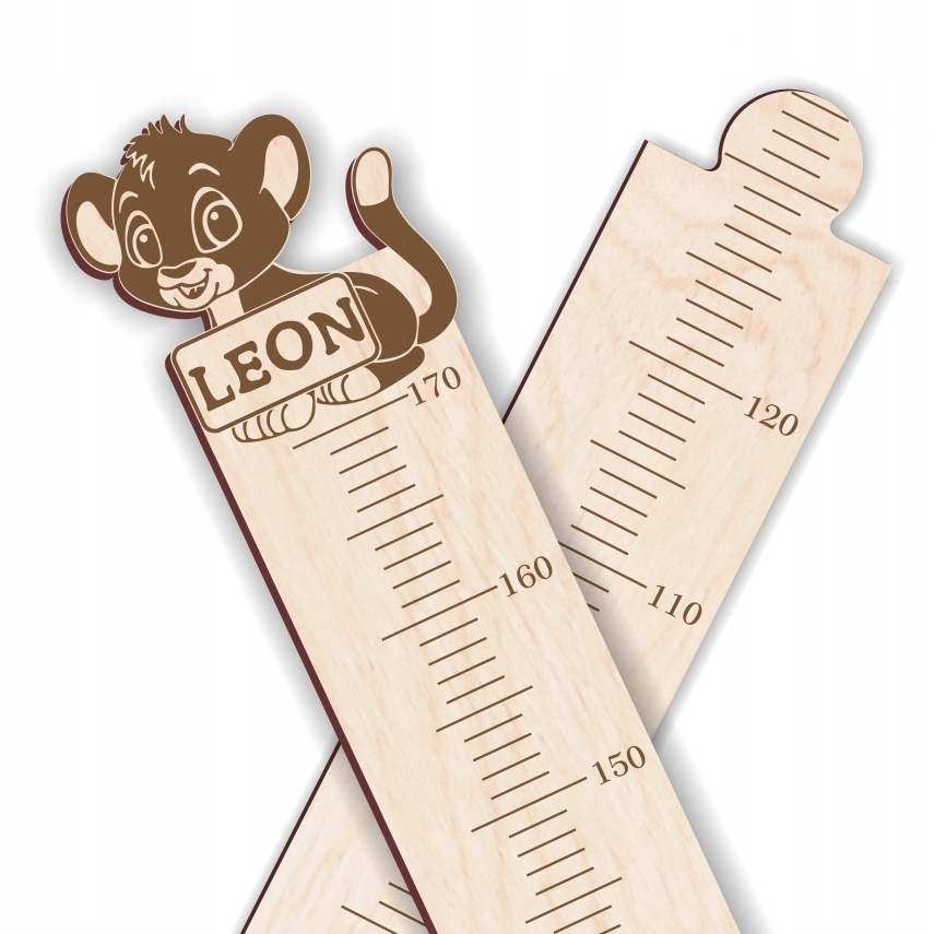 дерев'яний РОСТОМІР з ім'ям дитини левеня КОРОЛЬ ЛЕВ в подарунок
