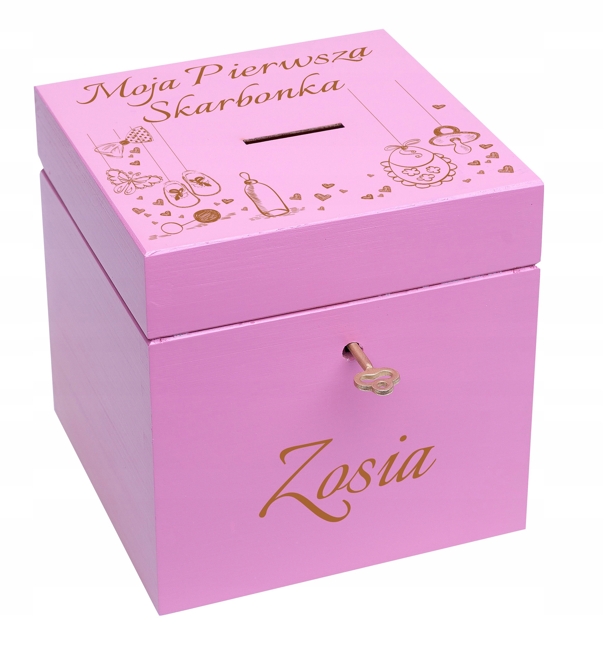 Мы представляем розовый деревянный пигги -берег с декоративным позолоченным ключом. Наш продукт будет идеальным в качестве первого поглощенного банка для детей и позволит ему накапливать свои сбережения. Полочный банк также хорош, если мы хотим сэкономить больше денег для таких обстоятельств, как свадьба - наши собственные или наши близкие и экзотический отпуск. Оригинальный дизайн означает, что коробка подходит практически в любом интерьере. Вы также можете рассчитывать на профессиональную помощь в подготовке проекта