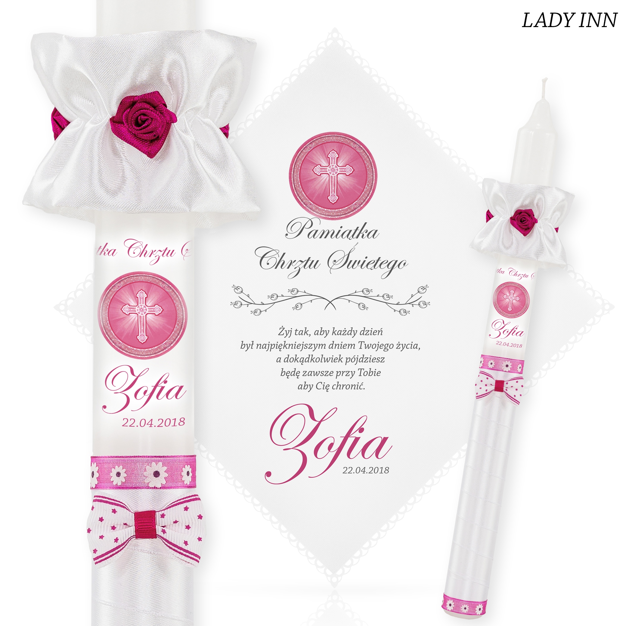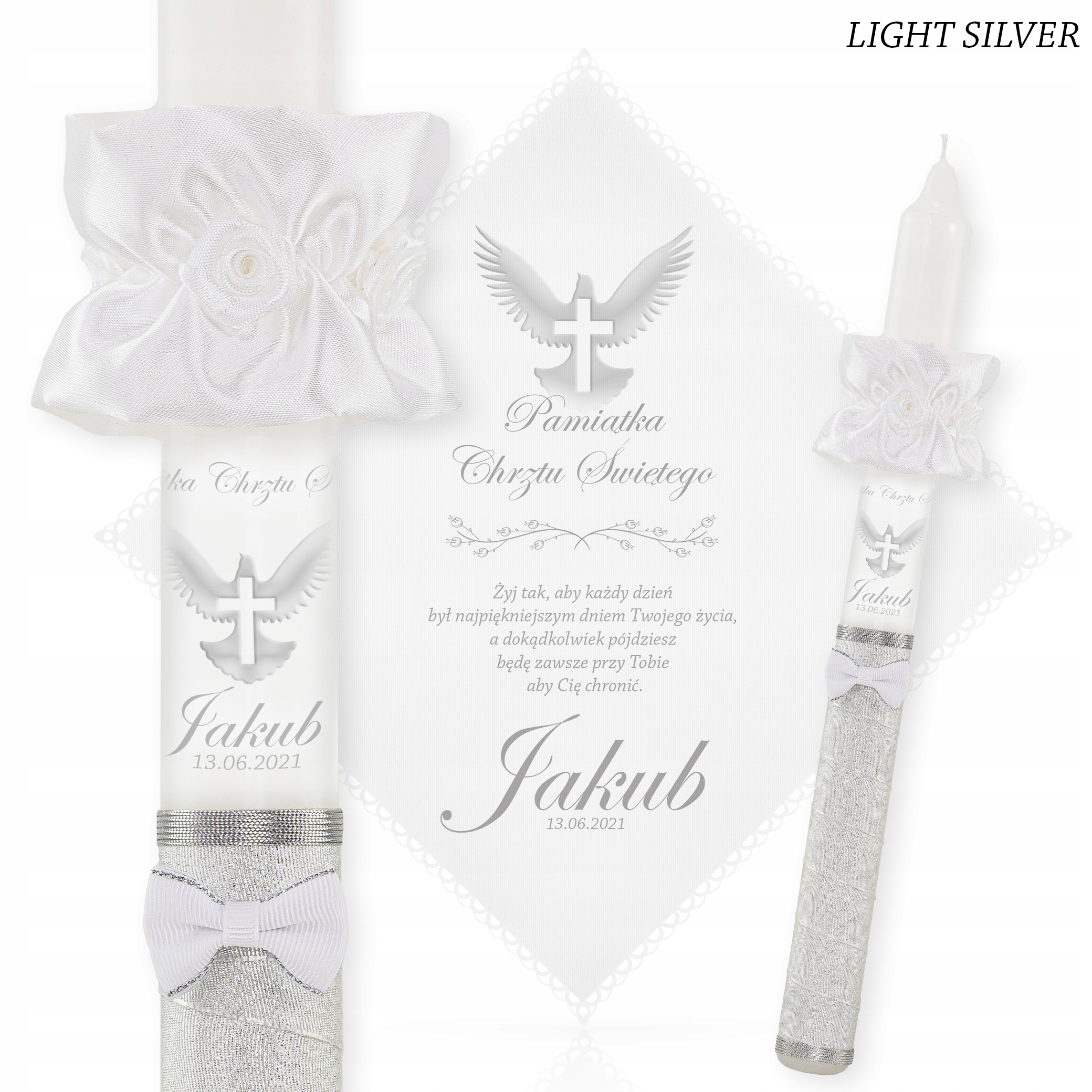 Подарок в виде белой одежды на крещение и свеча — первые подарки ребенку от крестных родителей. Красивый мотив нежного кружевного узора вокруг халата идеально соответствует имени и посвящению ребенка.